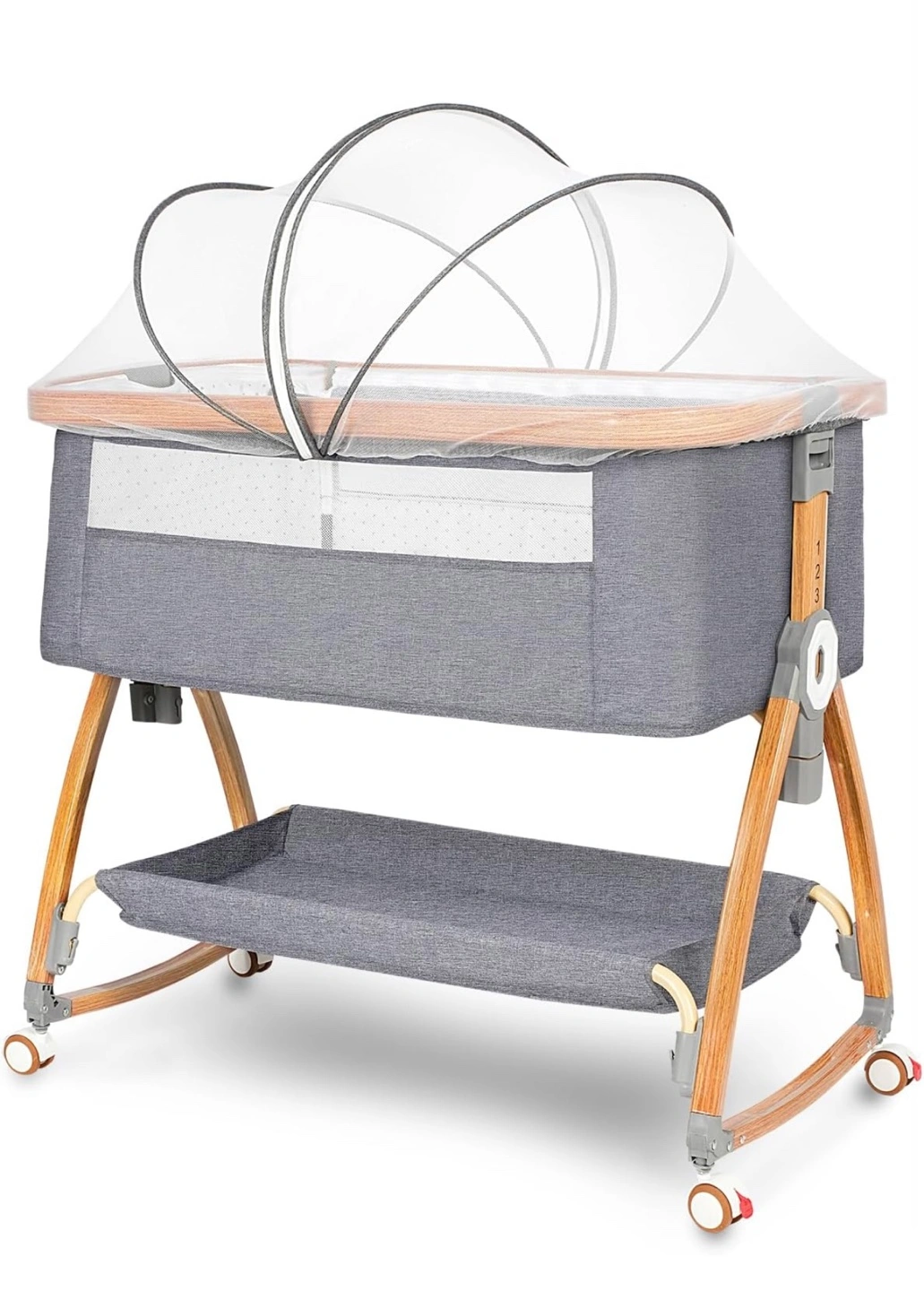 Baby Bassinet, Bedside Bassinet for Baby, 6 Height Adjustable Baby Bed with mattress , 3 in 1 Bassinet Bedside Sleeper with Wheels, Mosquito Net, Portable Bedside Crib for Infant/Baby/Newborn (Light Grey)
