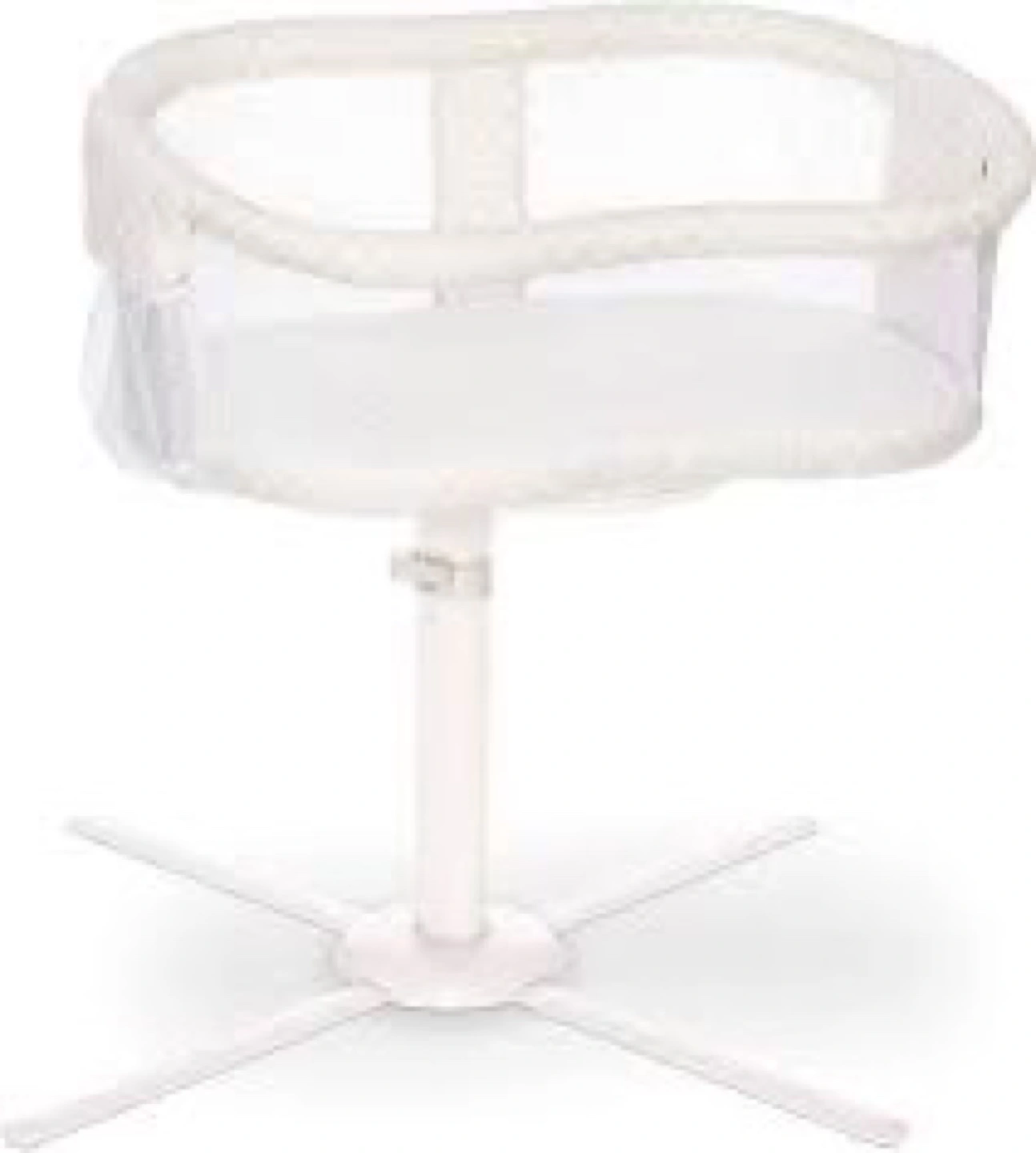 20Baby bassinet with stand. White and grey. Includes mattress. And 2 sheets