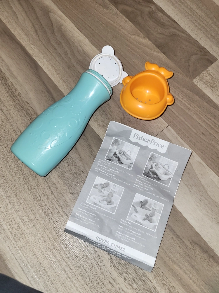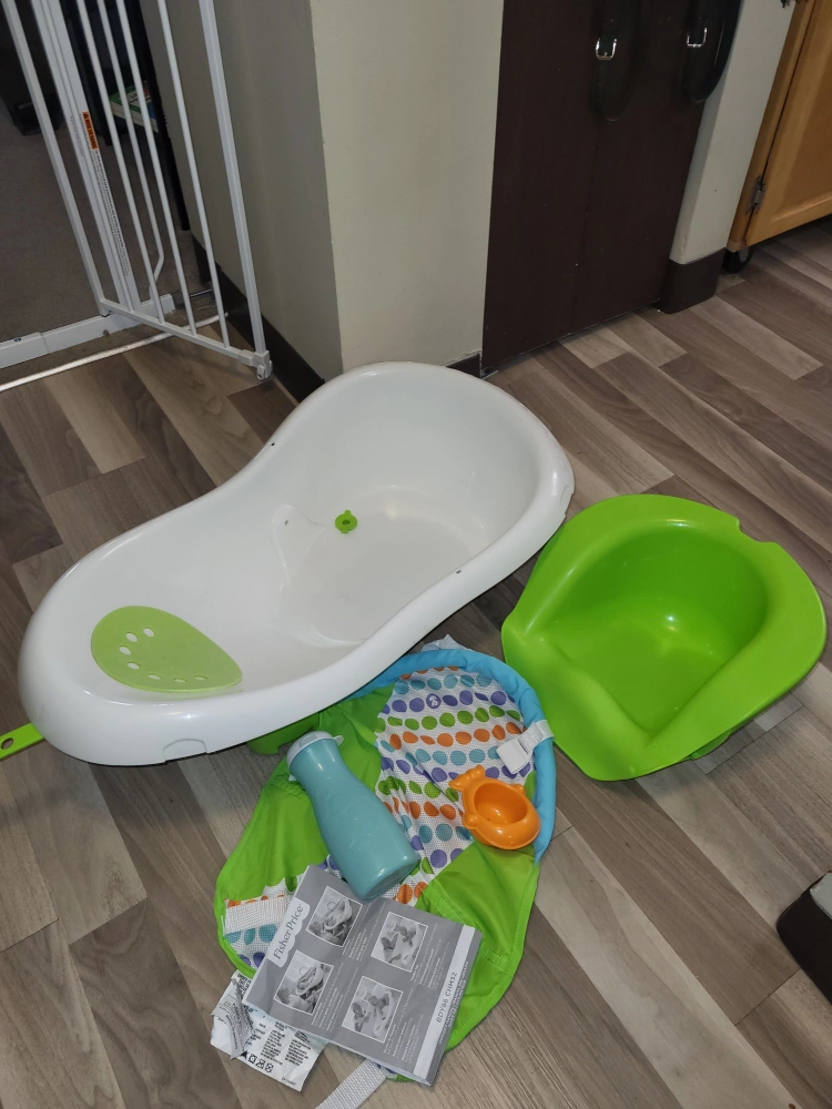 Fisher Price 4-in-1 baby to toddler bath tub with toy and spray bottle, adjustable to fit newborn to toddler. Excellent used condition, warning labels removed from green seat, but owners manual included with cautions. 2 hooded towels and 4 wash cloths New bottle of Aquafor baby wash Pickup preferred at border of bridgeland and crescent heights. Cash or e transfer accepted. If delivery needed, feel free to ask and we can discuss details to see if it works.