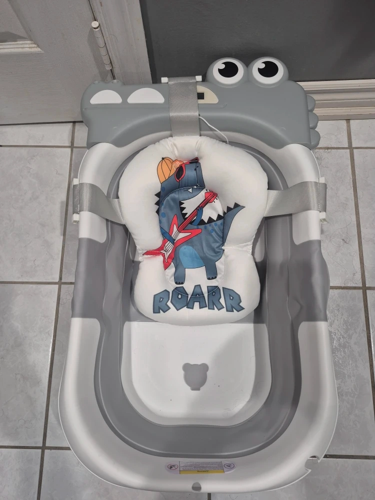 91Collapsible Baby Bathtub for Newborn with Real-time Temp Monitor + Soft Floating Cushion Durable Foldable Baby Tubs for Infants to Toddler, Portable Travel Bathtub with Drain Hole Grey Its brand new, never used just took it out of box. for ages: 0-36 months old
