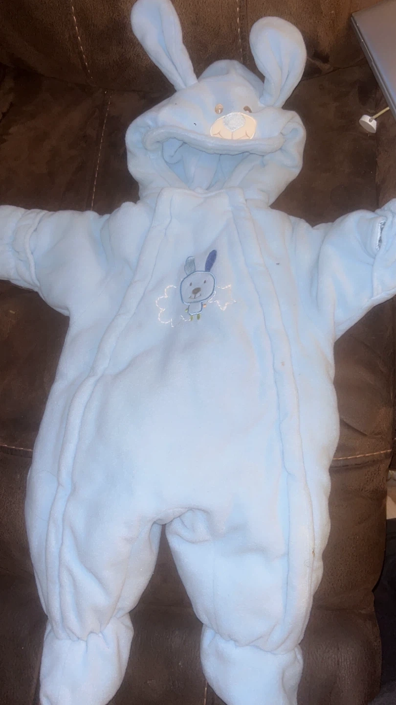 10Super cute baby snowsuit from B'gosh! It's a light blue colour with an adorable bunny design. Size is 6-9 months. Perfect for keeping your little one warm and cozy this winter