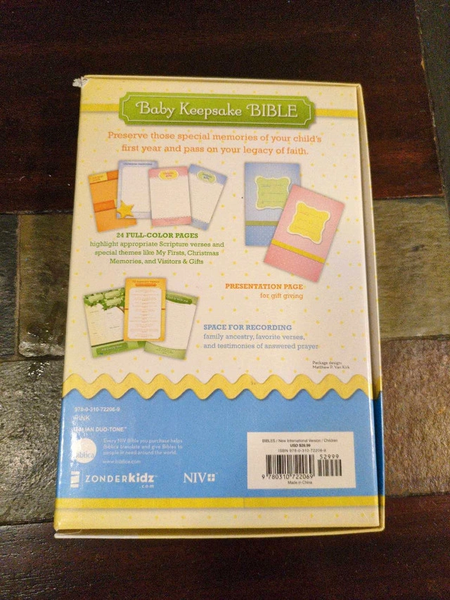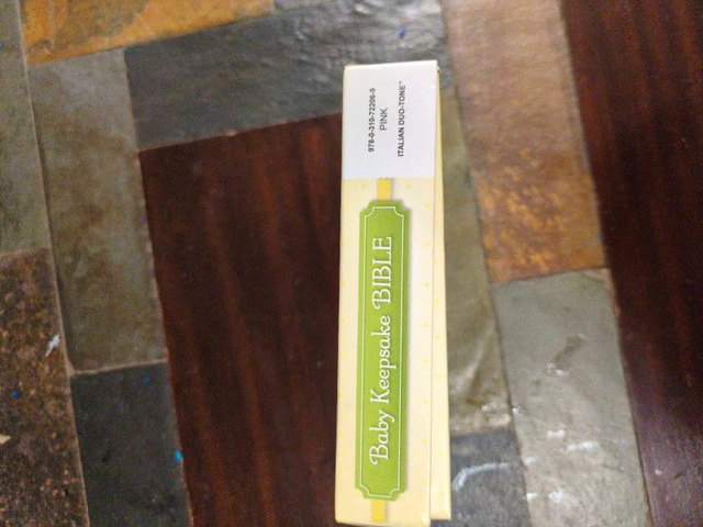 10Page with 'presented to' has been glued to first page, for privacy. Despite box being open, the box has several scratches and a few dents in the corner. Extra bible pages have never been used or touched. It's mainly been sitting in storage. Was given as a gift but never used.