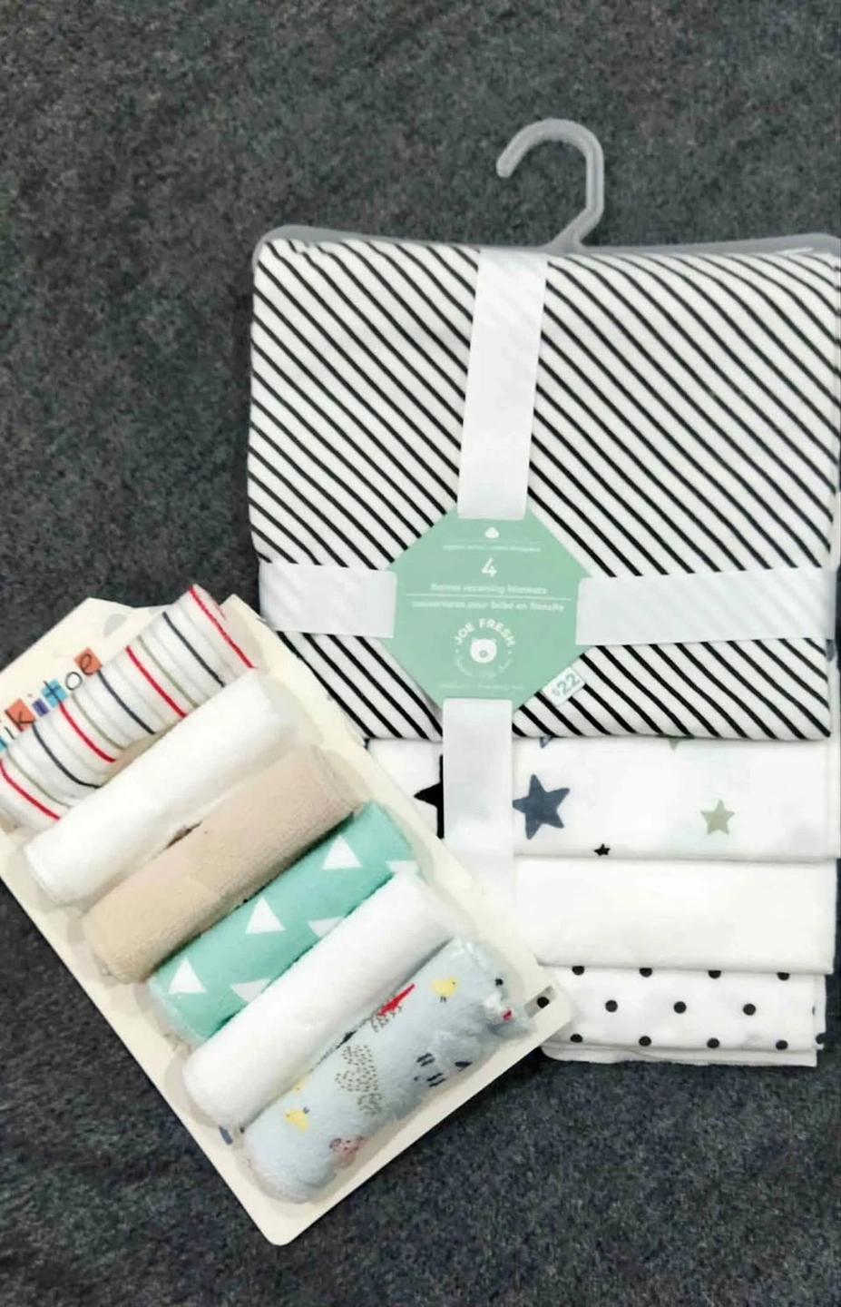 10Baby Blanket & Washcloth Set – Brand New Includes: 4 flannel receiving blankets (Joe Fresh – soft & breathable cotton) 6 baby washcloths 🧺 Perfect for newborns | 100% cotton | never used 💰 $20 for both sets