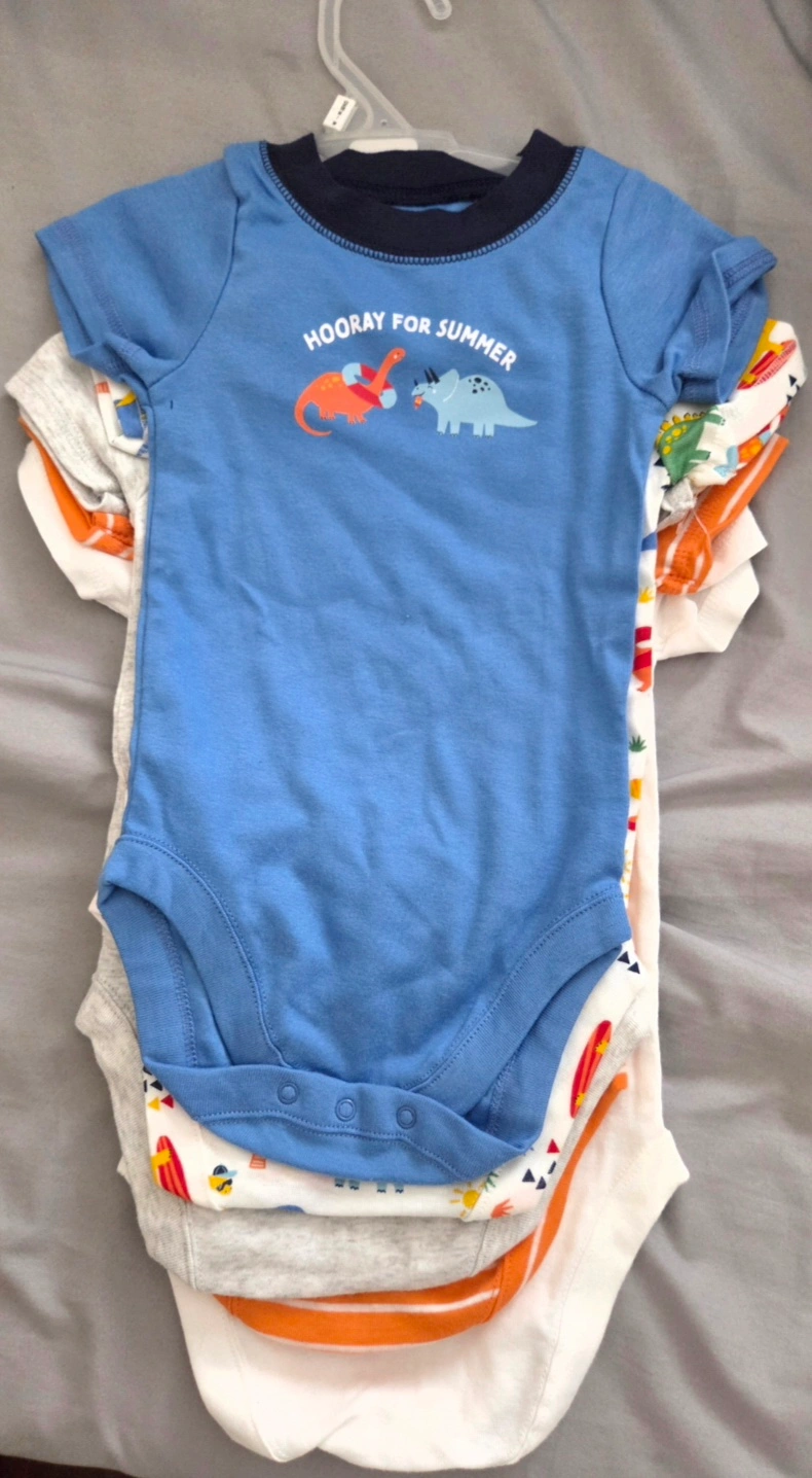 60A set of adorable baby bodysuits, perfect for your little one! These are in great condition and come in size 3-6 months. They feature cute dinosaur designs and are made from soft, comfortable material. A great addition to any baby's wardrobe!