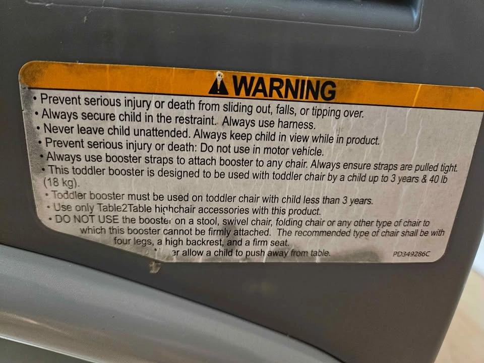 10Rarely used. Please read specs in attached picture. Chair can be detached as a booster. Geoff