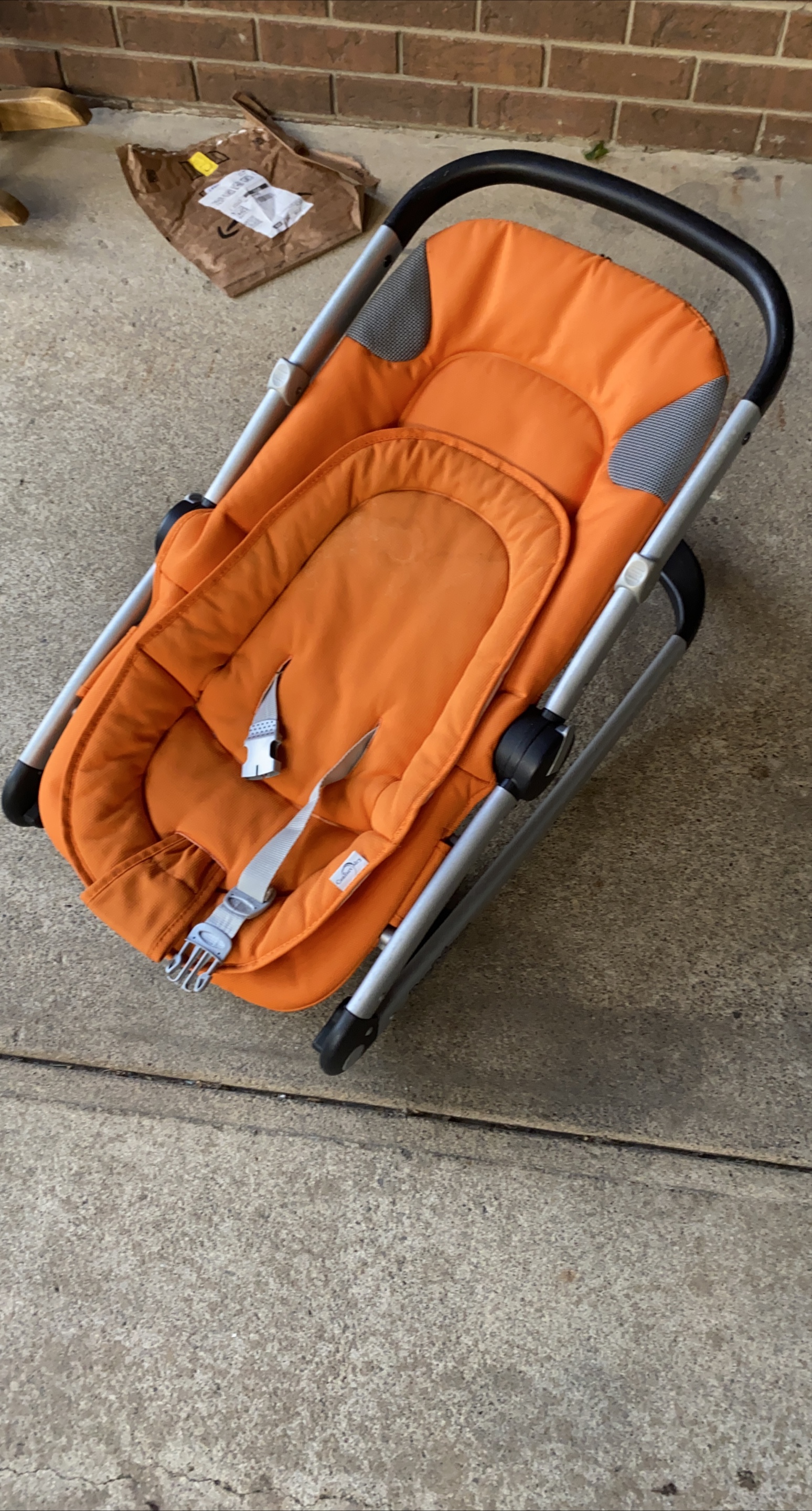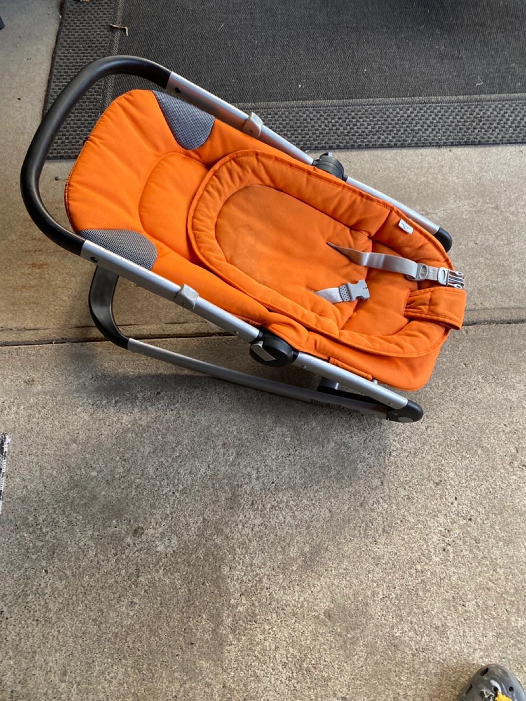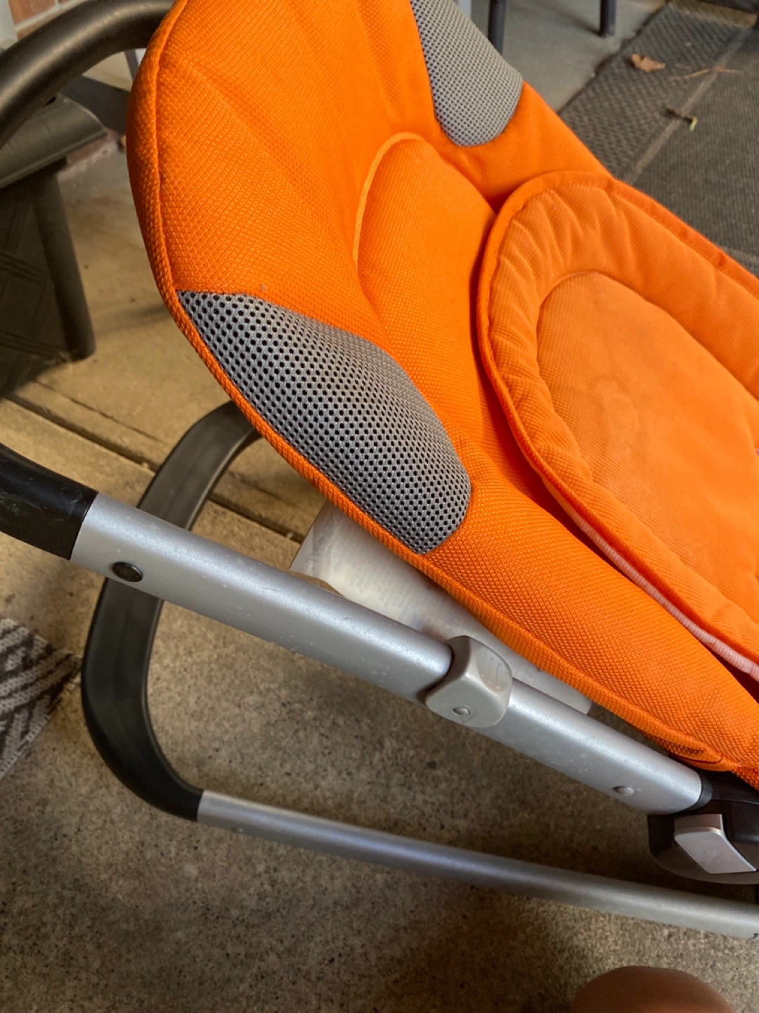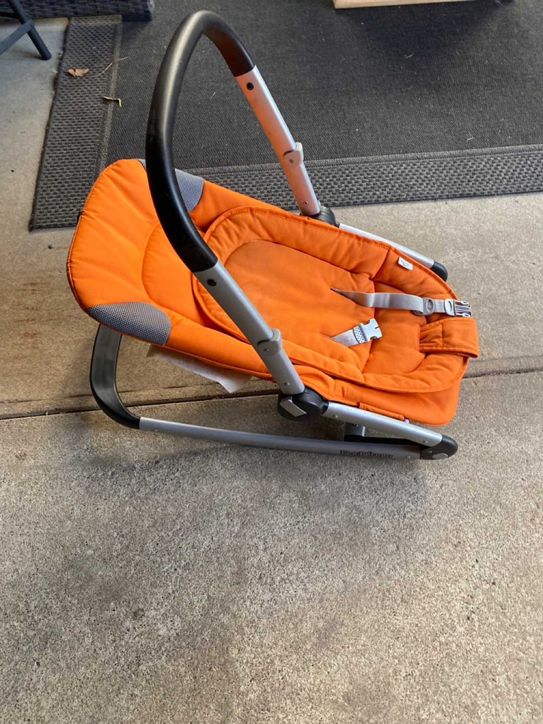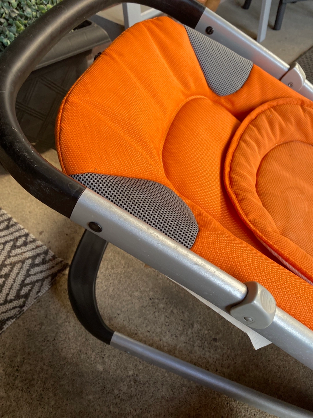 36Selling a gently used Baby Bouncer Balance Soft in a vibrant orange colour. It's perfect for soothing your little one with its natural rocking motion. The soft fabric and ergonomic design ensure your baby's comfort and support. It's lightweight and easy to move around the house so you can keep baby close by your side