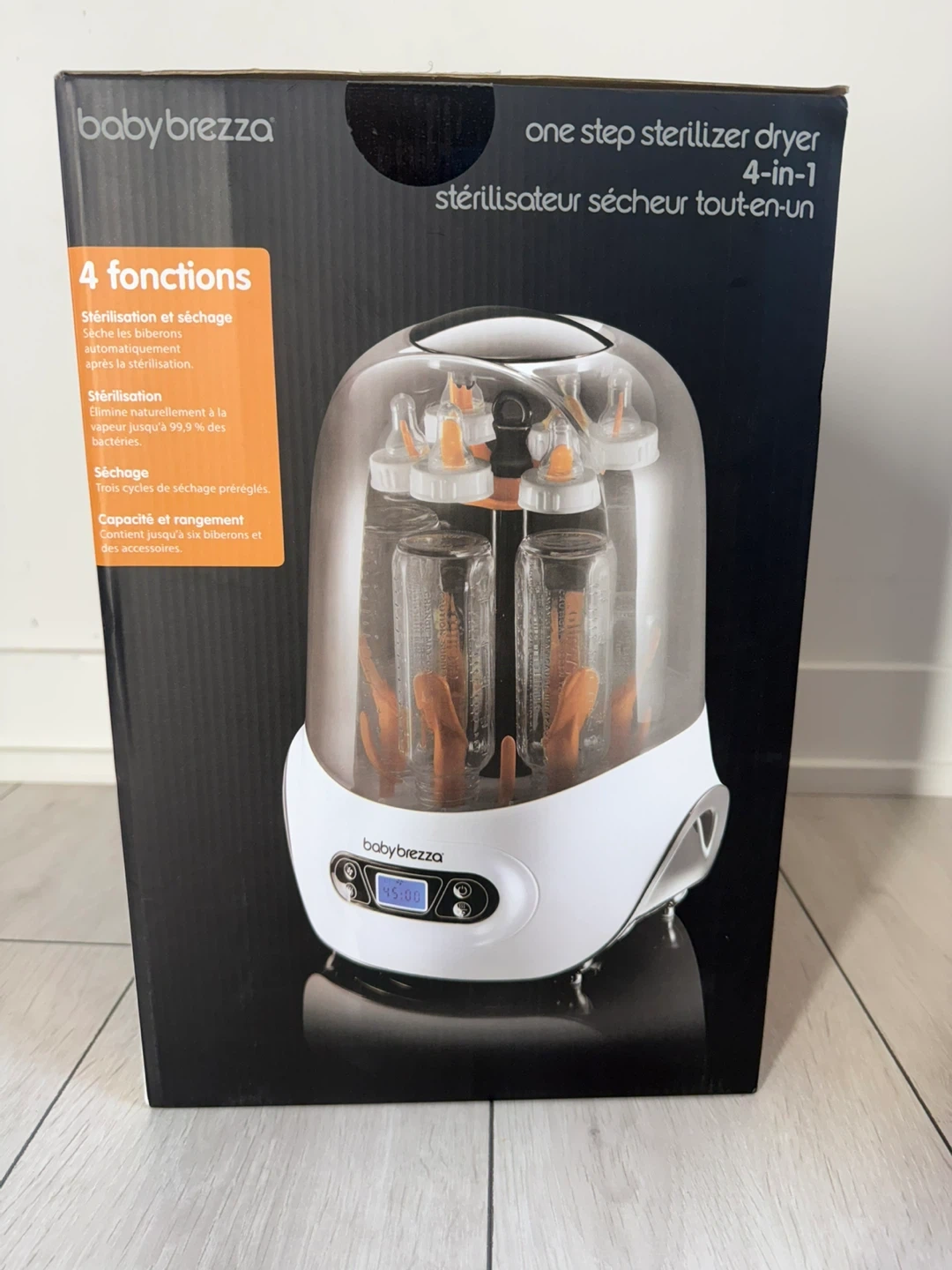 Selling a Baby Brezza One Step Sterilizer Dryer 4-in-1! It's in like-new condition and comes with the original box. This sterilizer and dryer can sterilize and dry bottles automatically after steam sterilizing. It also holds up to 6 bottles plus accessories. Super convenient for keeping baby bottles clean and ready to go!