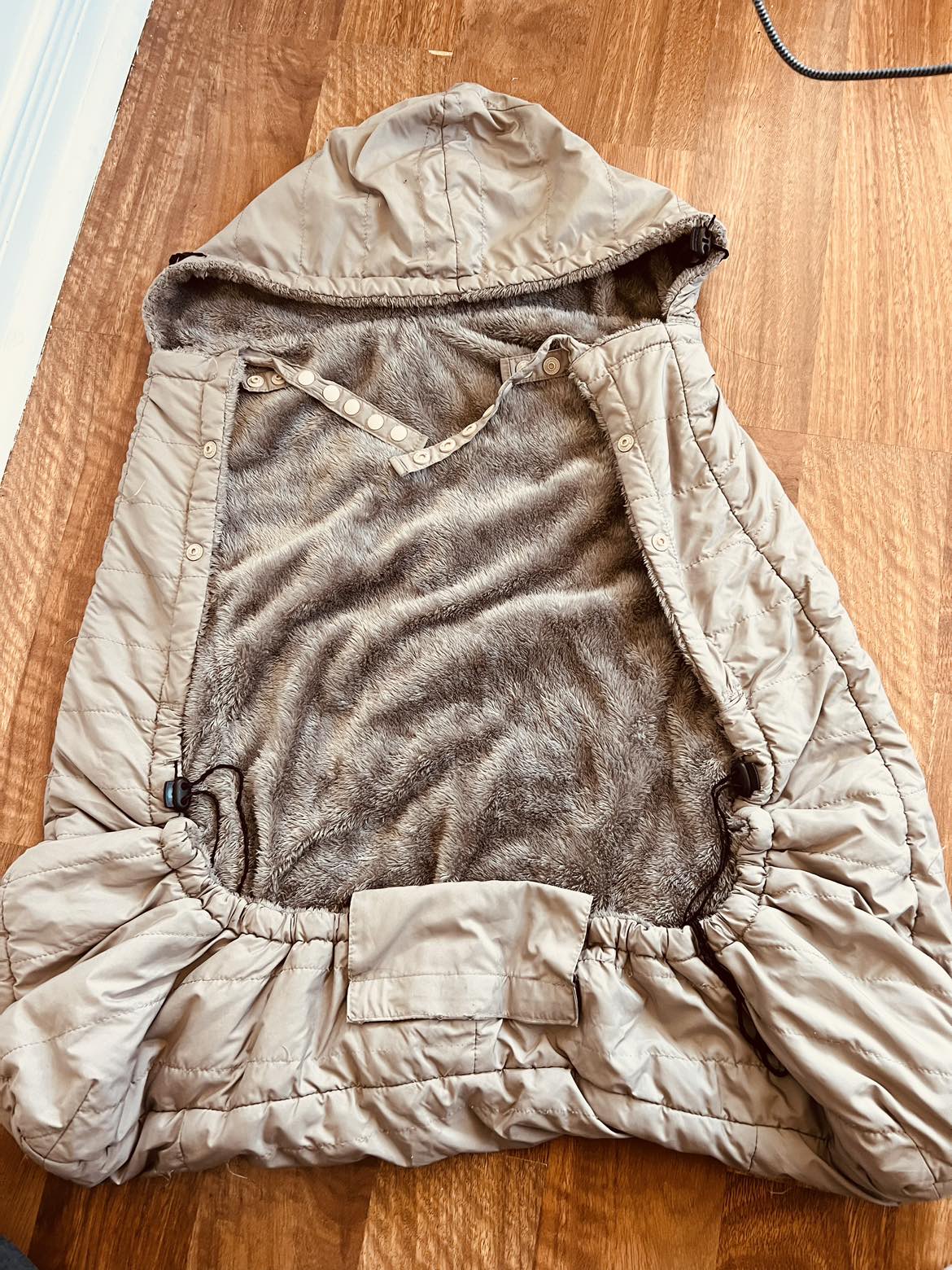 112Can be used as a cover for a baby carrier and as a blanket for a stroller. There is an outside pocket. YouTube: BabyHopper Blue Label *It’s been used but it’s still quite functional. If you’re looking for something in perfect condition, this might not be the right fit for you. If this ad is still up, the item is available