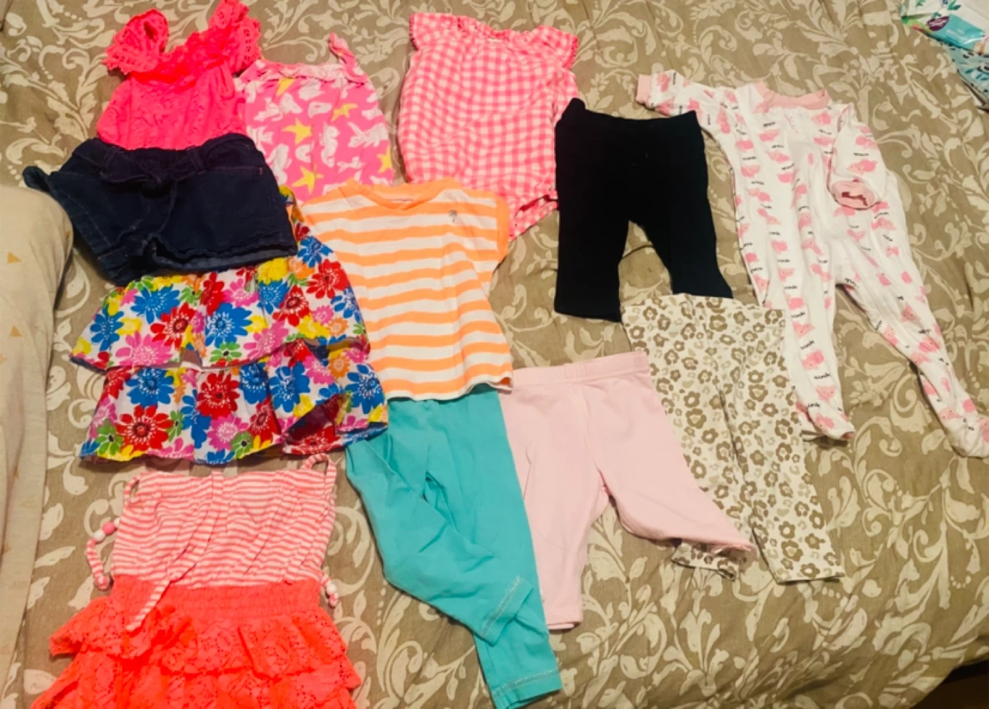 437Selling a bundle of baby clothes in various sizes and styles! There's a mix of onesies, pants, sleepers, and dresses. Great for stocking up on essentials for your little one. All in good condition and ready for a new home. Some of them are 6-9 months Majority is 12 months. $2 each one. (The piece not the bundle)