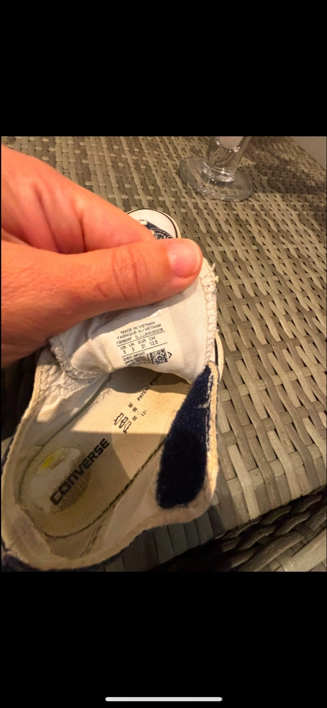 381Infant size Converse All Star slip-on shoes. Dark blue denim fabric. Pre-owned, but still has so much life left Smoke free pet free home Pick up can be Rathburn and the west mall area Or Symington and DuPont