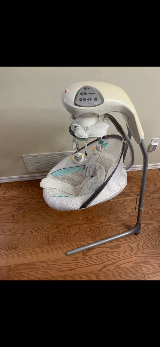 Baby Cradle Swing - Fully Working Swinging Bassinet with Hanging Toys Bassinet with hanging toys perfect for your little child to fall asleep in, lay and relax while looking at the hanging toys for amusement and fun until they fall asleep The bassinet can swing back and forth to help give your baby some fun while tiring them out to help them sleep Fully Working, Swings the carriage with speed control, Spins the hanging toys, Plays relaxing baby music To see a video of it, message me Cheap - message me Can be picked up or delivery