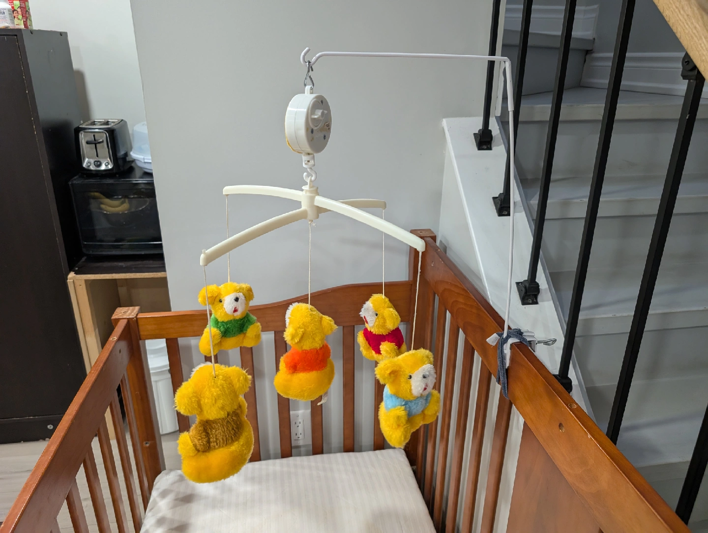 32A cute baby crib mobile featuring Winnie the Pooh bears! This mobile is in great condition and ready to soothe your little one to sleep. It easily attaches to most cribs and adds a touch of whimsy to the nursery