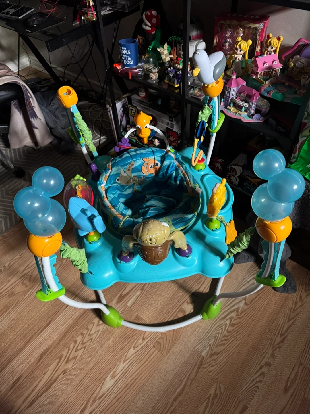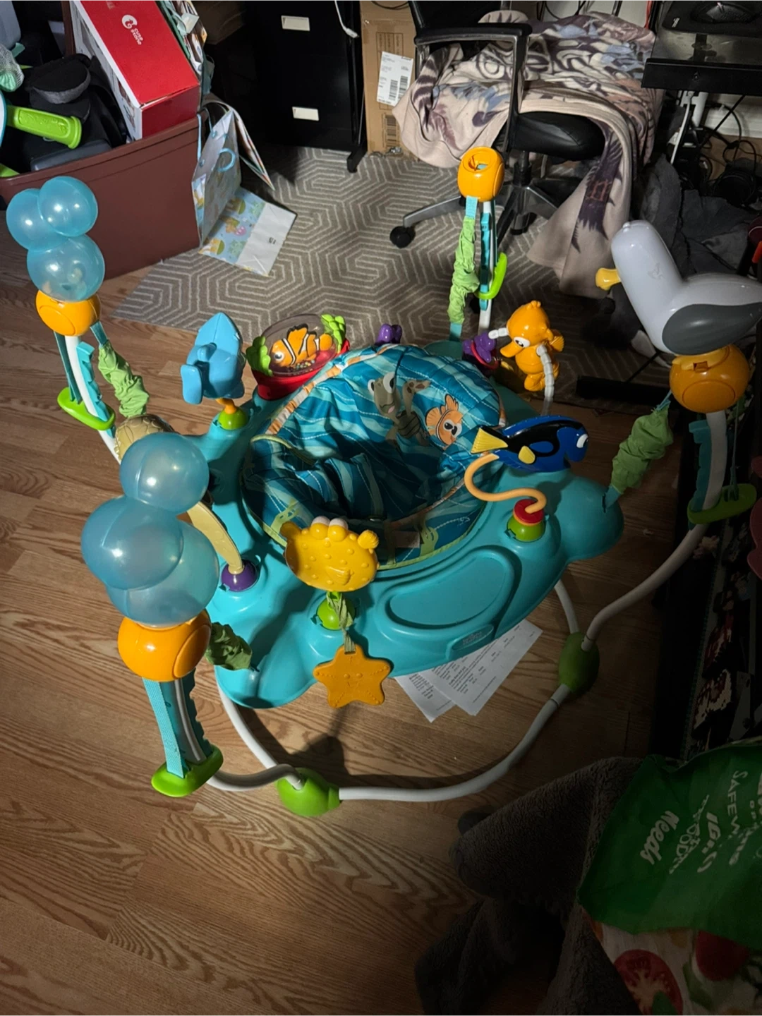 Looking to sell this Baby Einstein Neptune's Ocean Discovery Jumper! It's in great condition and ready for a new little one to enjoy. It features a variety of engaging toys and activities to stimulate your baby's senses and encourage development. The jumper provides a safe and fun environment for your baby to bounce and play!