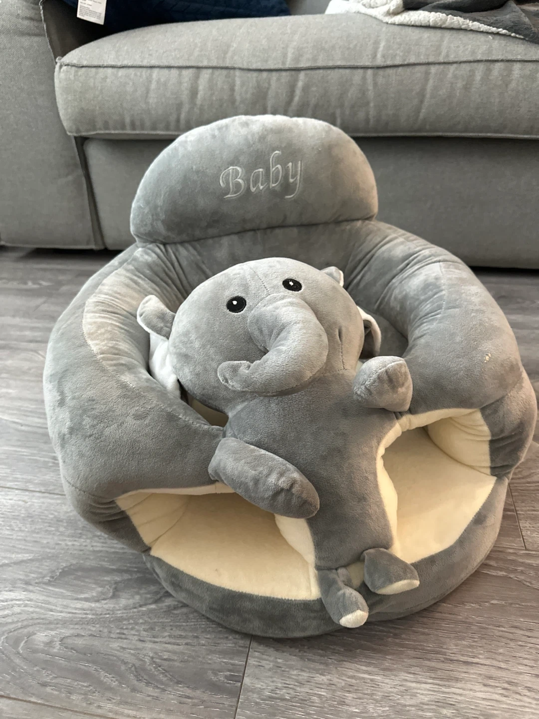 117Selling a super cute baby support seat! It's in great condition and comes with a plush elephant toy. The seat is a soft grey colour and provides great support for little ones learning to sit up
