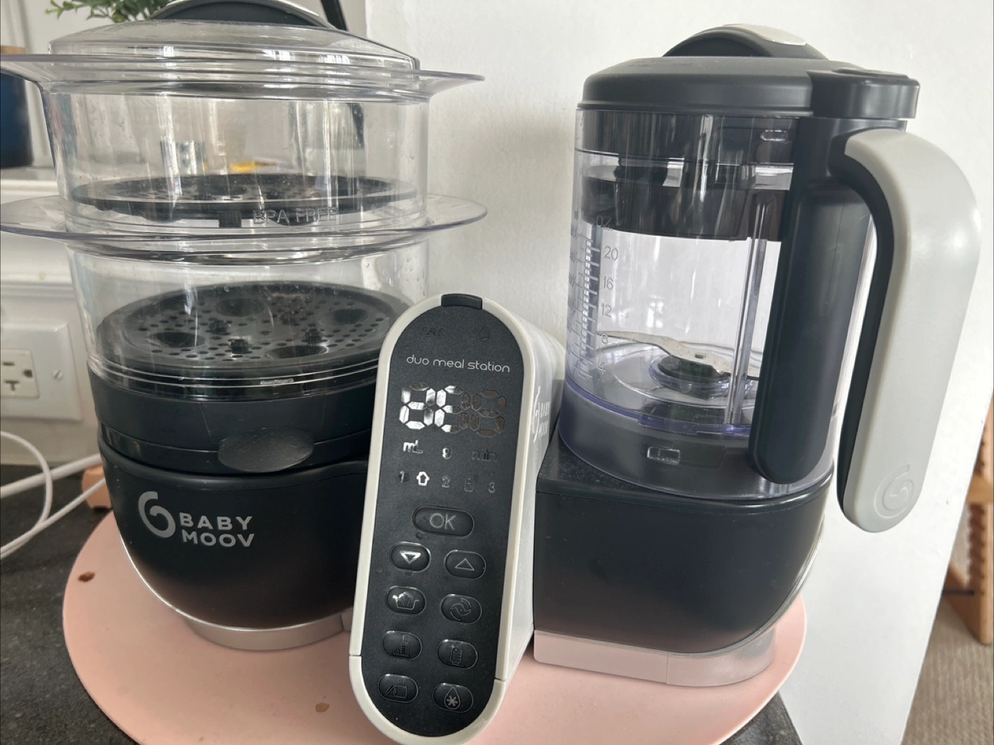 Baby food maker. Steaming and blending functions. Digital control panel. Includes a steamer and blender base. A great item for making home-cooked baby food.