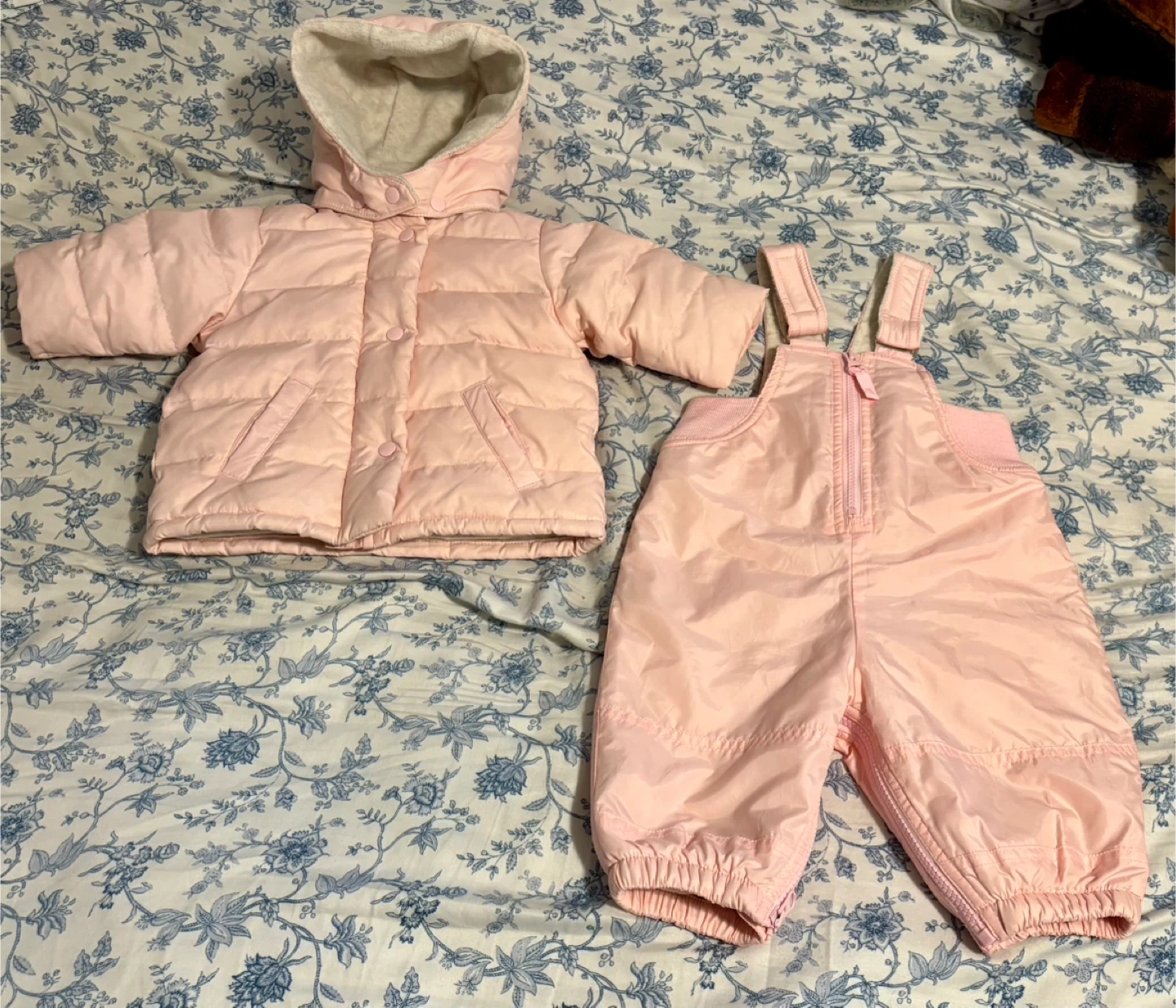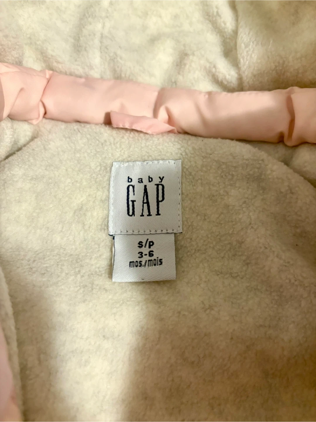 20A cute and cozy Baby GAP snowsuit, perfect for keeping your little one warm this winter! The set includes a jacket and snow pants, both in a lovely pink colour. Size is 3-6 months