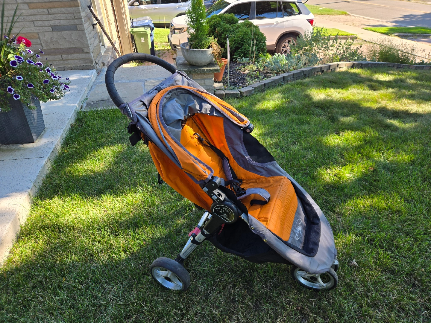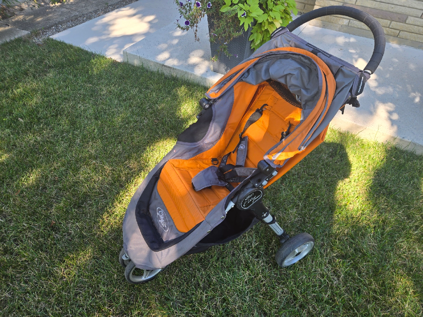 10Selling a Baby Jogger City Mini GT stroller in orange and grey. This stroller is in good condition and ready for a new family! It's lightweight and easy to maneuver, making it perfect for city living and adventures. The City Mini GT is known for its one-hand fold, adjustable handlebar, and comfortable seat. It's a great stroller for everyday use!