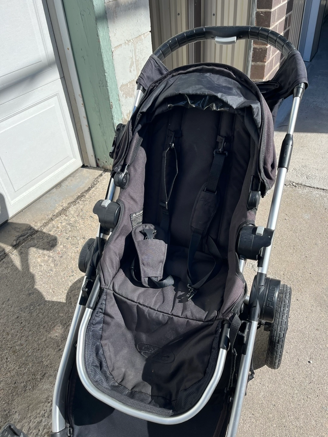 Selling a Baby Jogger City Select stroller in good condition! It's a versatile stroller that can be configured in multiple ways to suit your needs. Perfect for growing families! Comes with second seat and extra front wheels!
