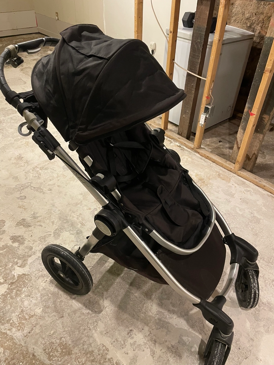 Used Baby Jogger City Select stroller. Black fabric. Some minor scratches. Great for everyday use. Lightweight and easy to manoeuvre. Well taken care of.