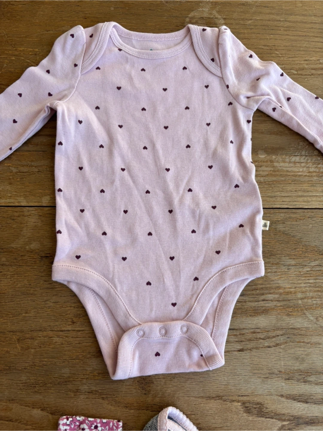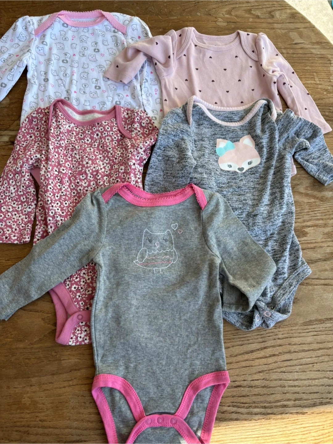 65A bundle lot of five baby long sleeve onesies . Size 3-6 months. All are in good condition and ready for a new little one! The set includes a mix of patterns and colours. (Lot A13)