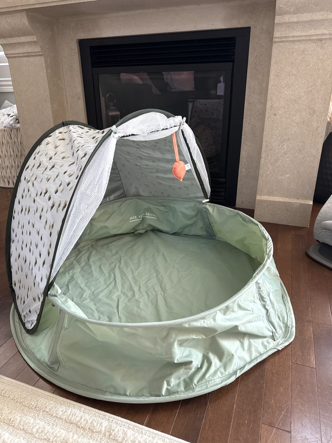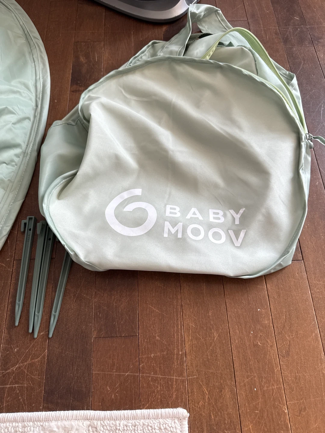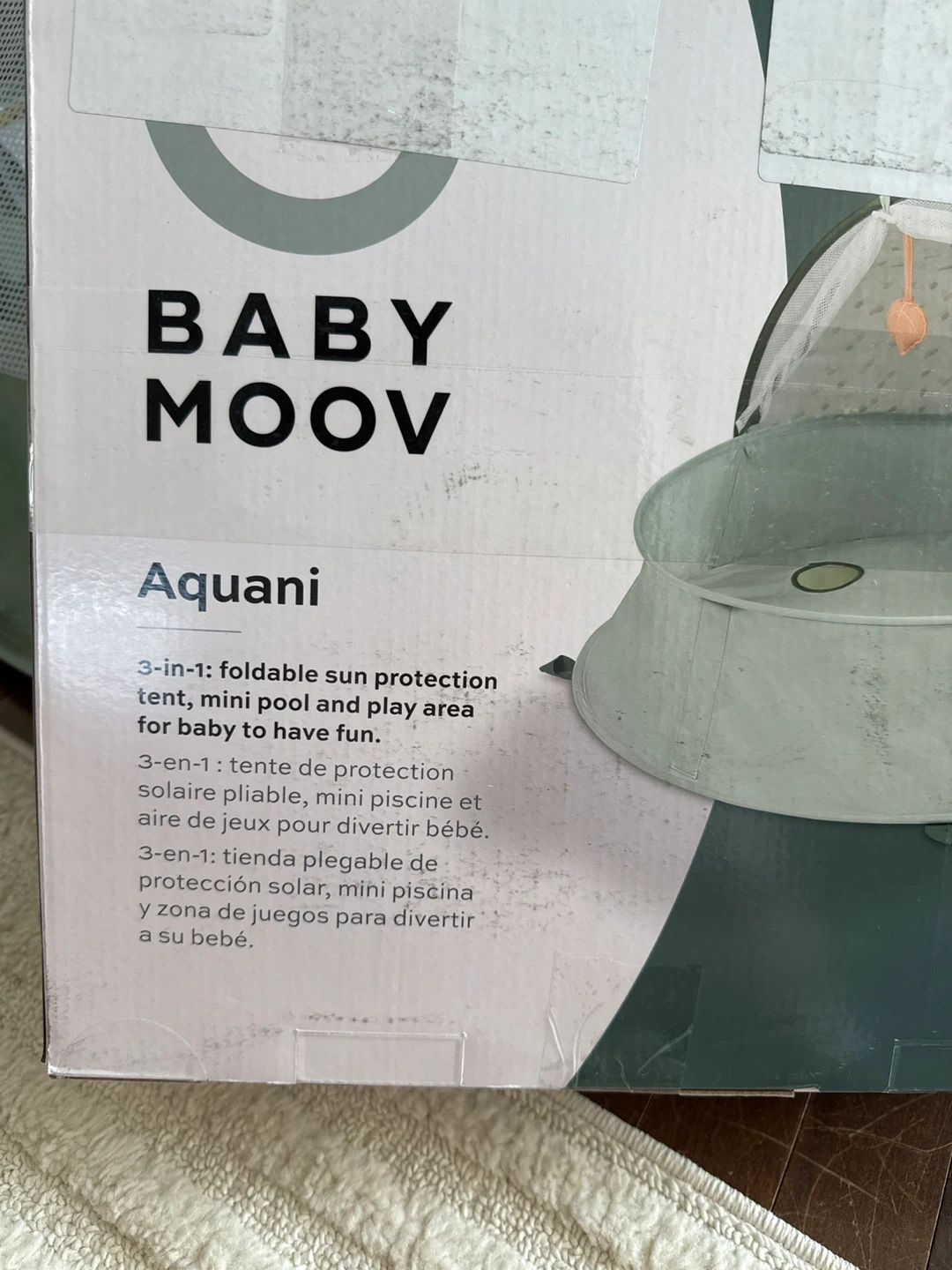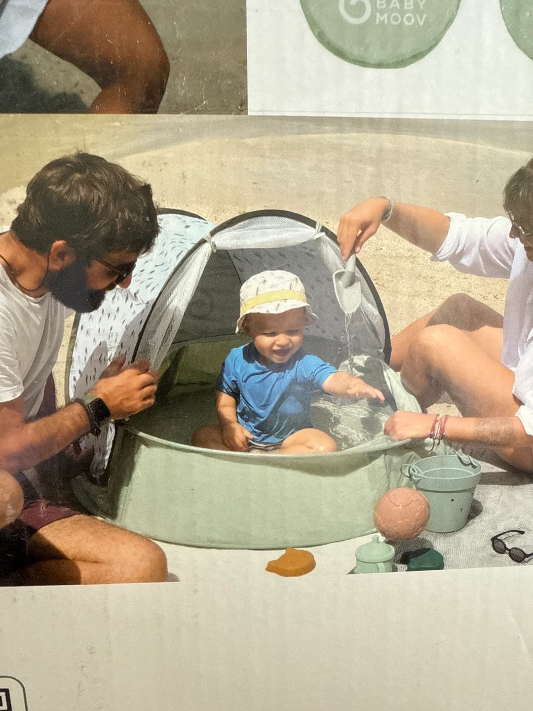 This Baby Moov anti-UV tent / pool is perfect for keeping your little one safe from the sun! It's in great condition and comes with the carrying bag and stakes. Ideal for the beach or backyard, providing shade and protection for your baby. Has mosquito netting as well. Only used one weekend at the cottage on the deck. Never been in sand or dirt. Very clean! Can be used as a kiddie pool, or play pen outdoors. Originally paid $119