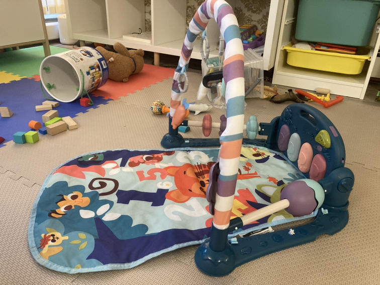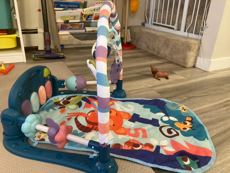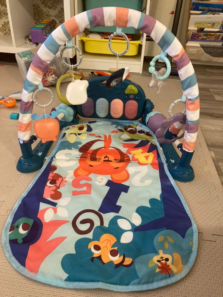 Good used condition baby play mat with music, there is a tiny crack and missing one piece but everything else works great! My baby loved it because I it has lots of different music features