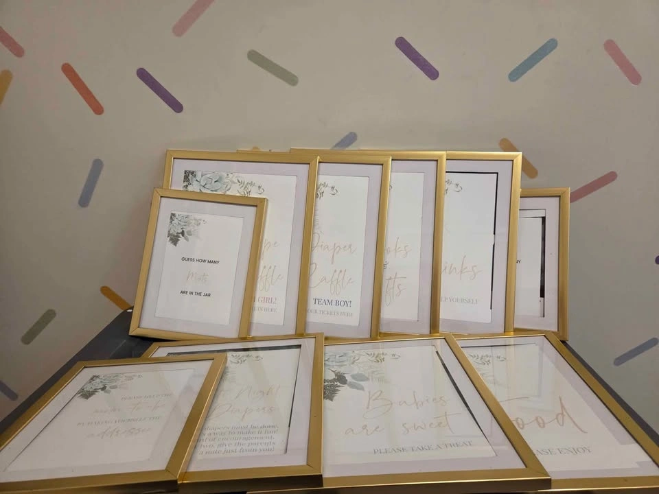 Big Baby in Bloom themed Baby shower bundle. Bundle Includes: 6 centerpieces 6 tablerunners 7 gold framed 8×10 inch signs 3 gold framed 5×7 inch signs 1 gender reveal backdrop (3ft by 5ft) 1 generic backdrop (5ft by 7ft) 2 leafy garlands (as shown with gender reveal backdrop) Asking $130. Located near Woodstock hospital. Cat friendly, smoke free home.