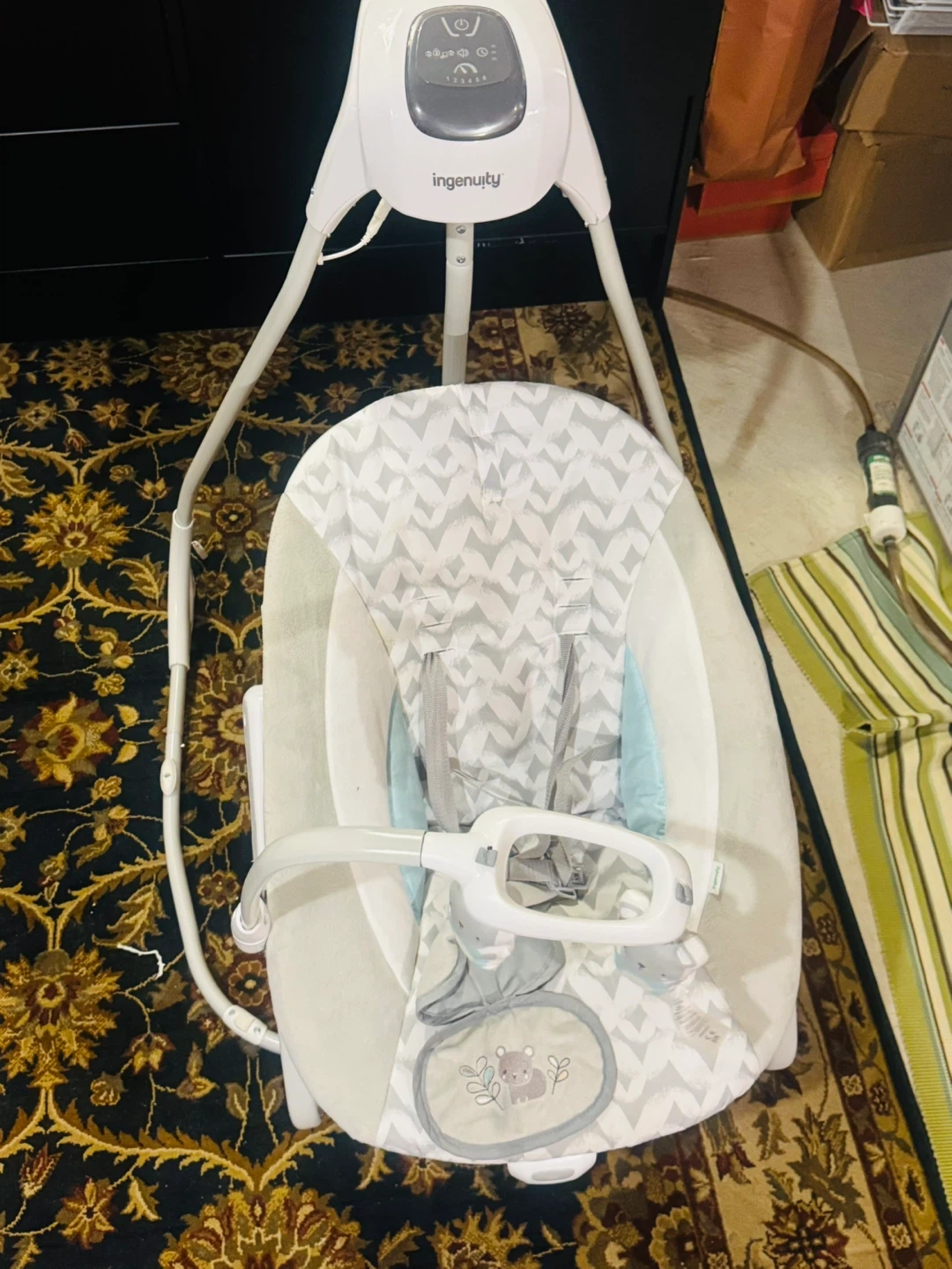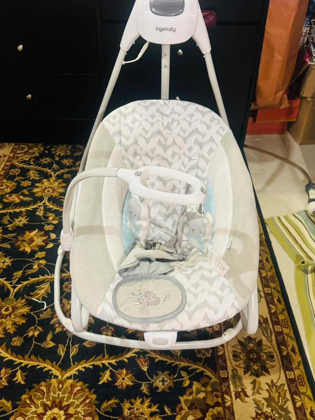 Selling an Ingenuity baby swing in great condition! It's perfect for keeping your little one content and relaxed. The swing features a comfortable seat with a cute design. It's easy to set up and use, making it a convenient addition to your baby gear