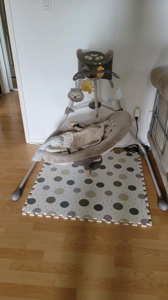124Features a comfortable plush seat, and overhead mobile. The swing is suspended from a sturdy frame. I hope that this baby swing helps you and your little one unwind after a long day.