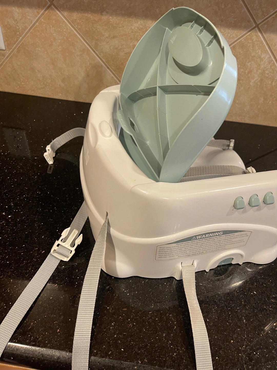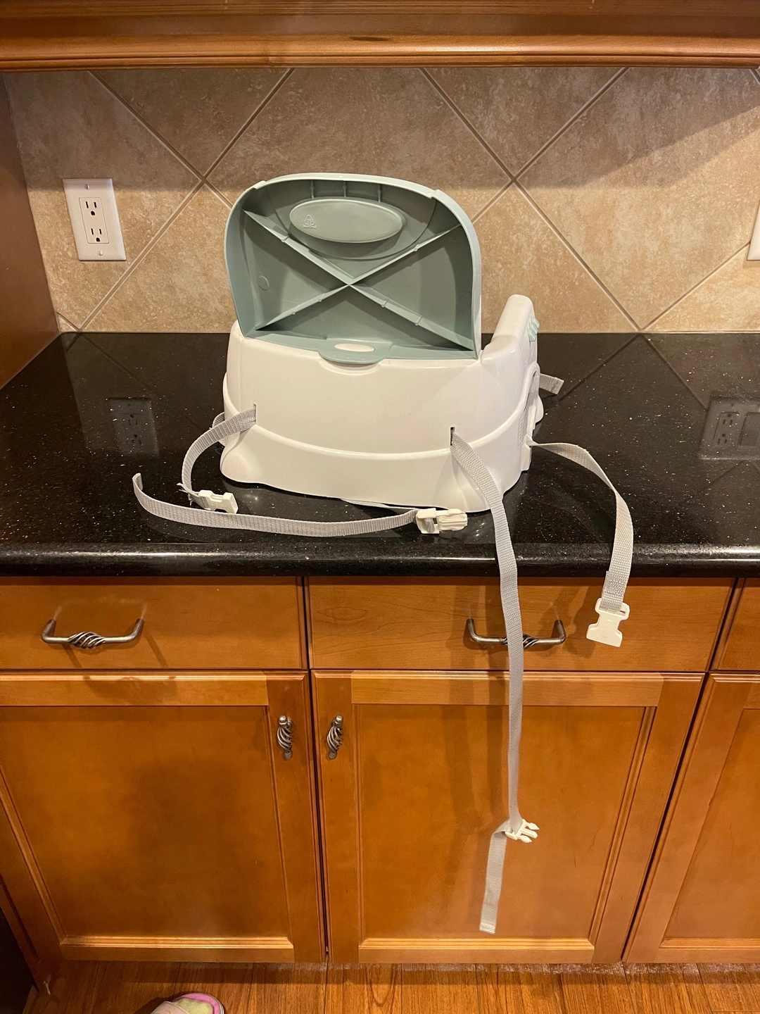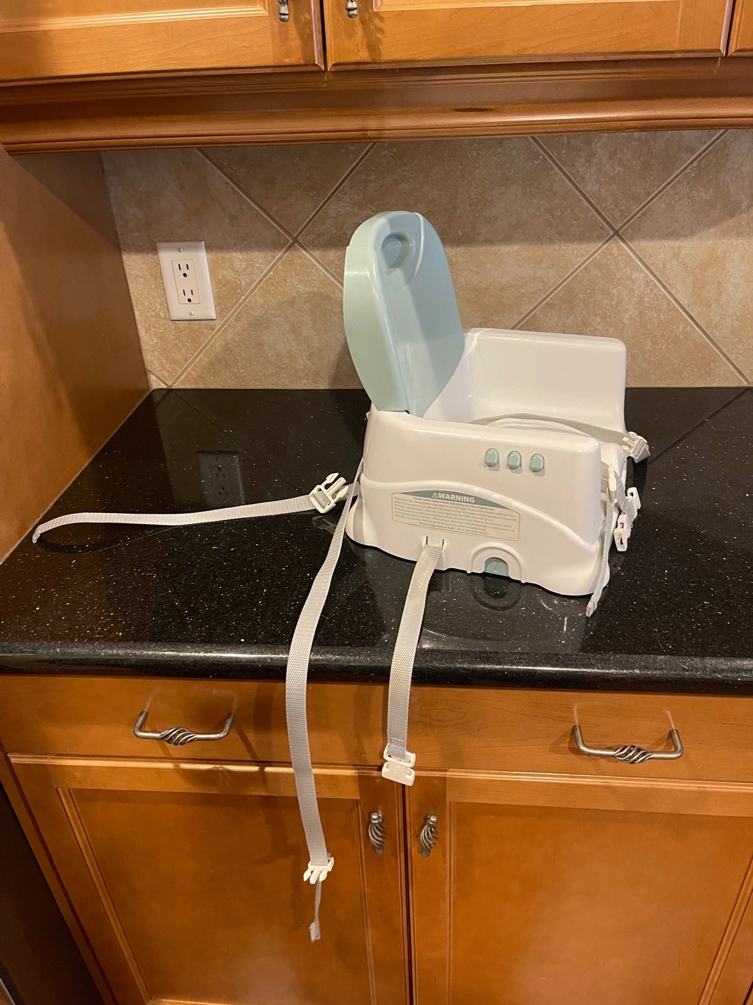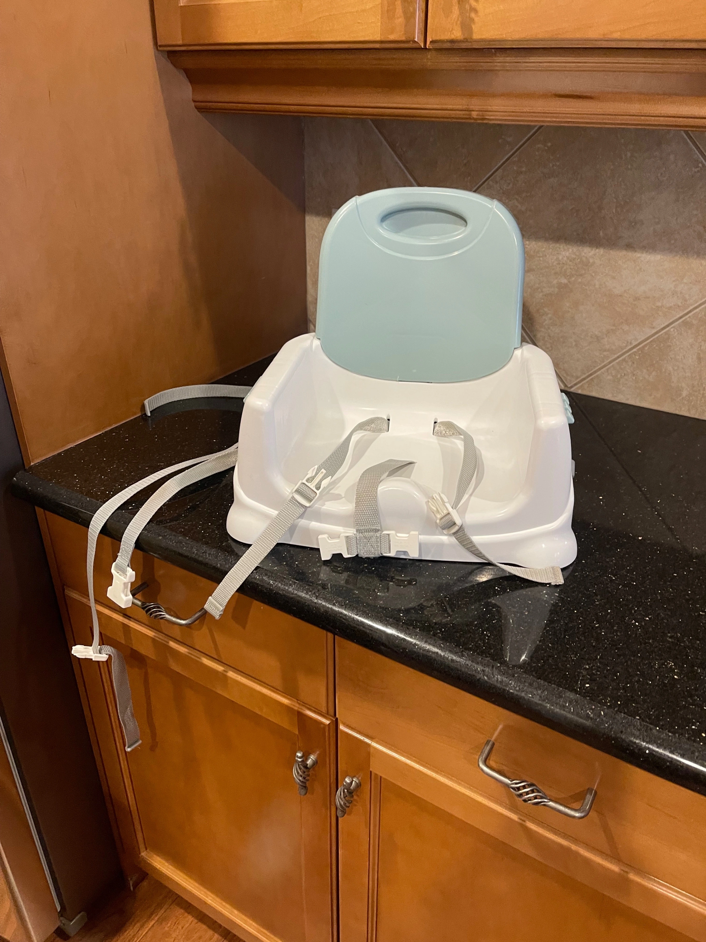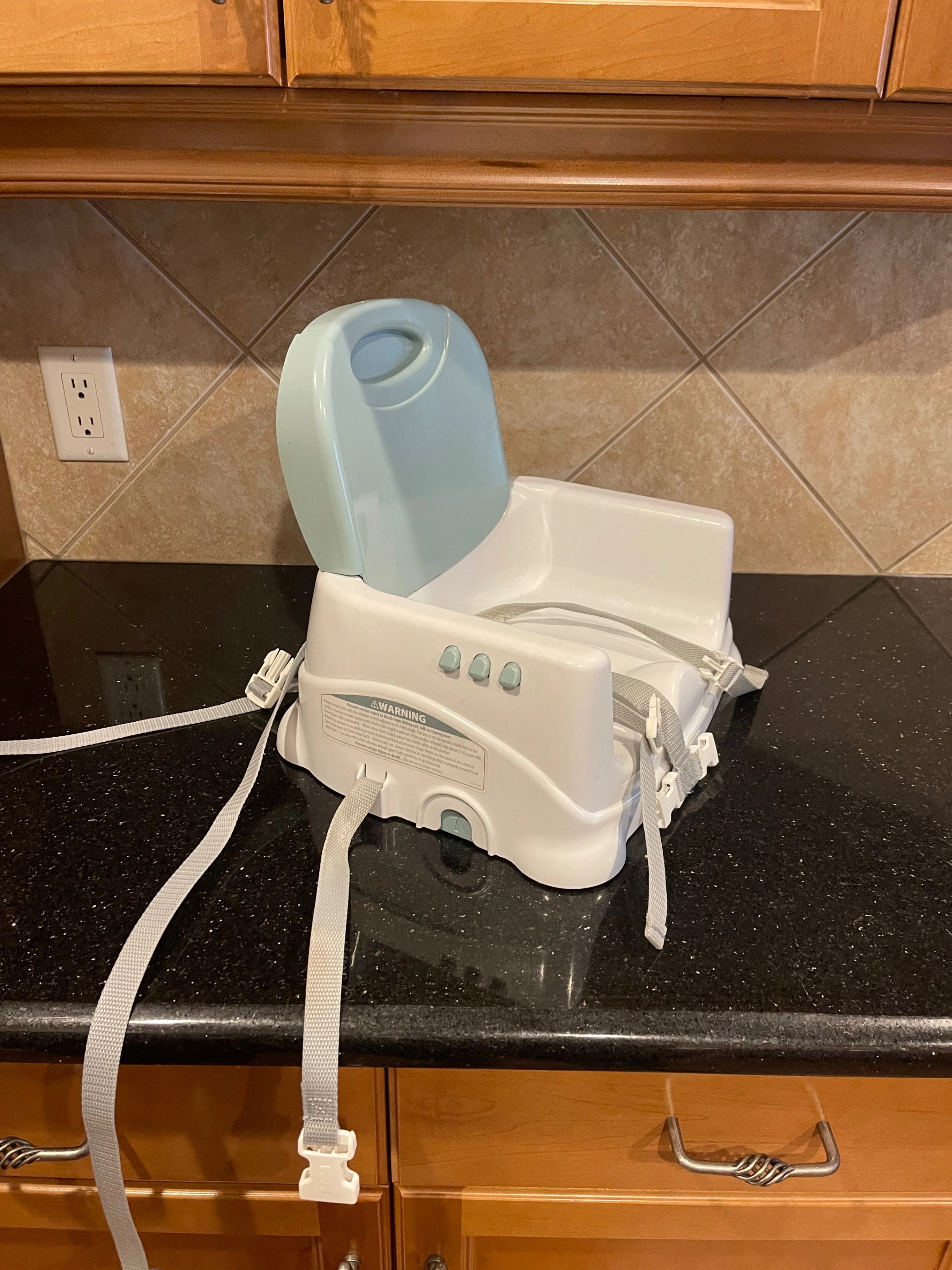 Moving Sale. Well kept and good condition. Back is removable. Safely straps into any type of chair. Cash only. Pick up only, no delivery. OBO but no low ball offers. Cash only. If this ad is up, this item is still available.