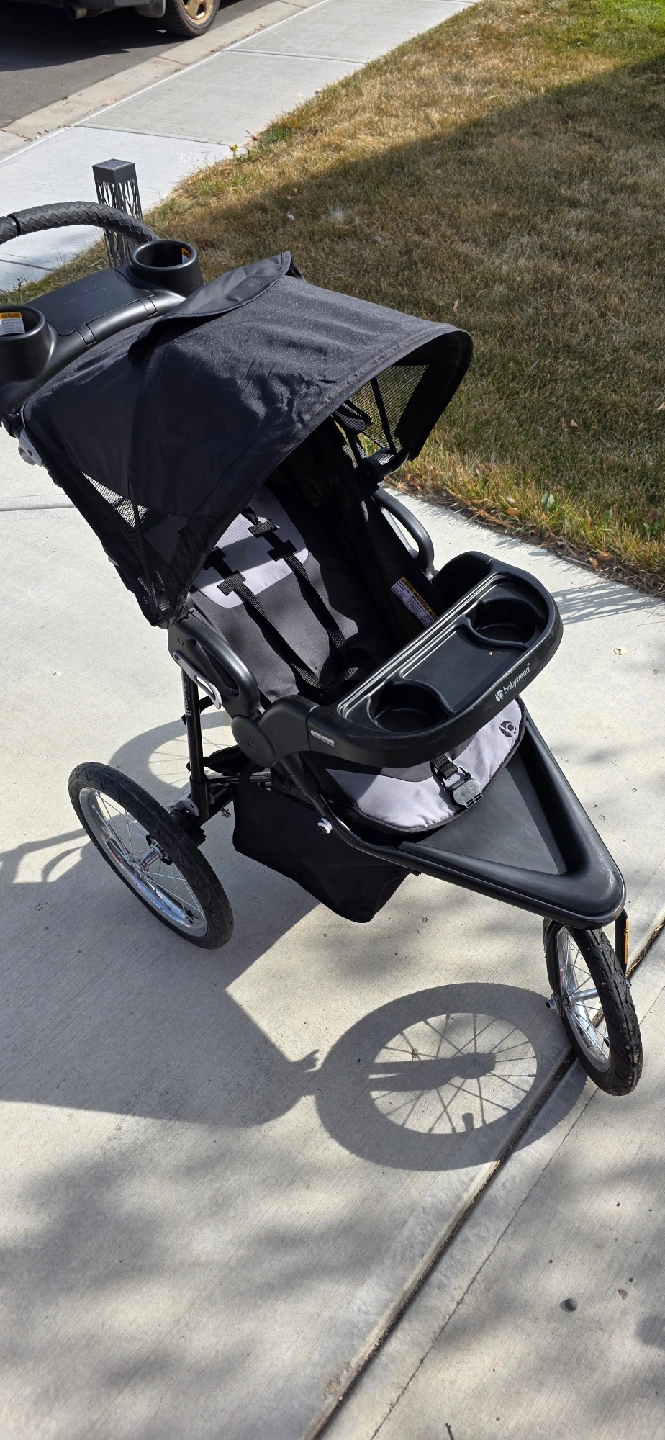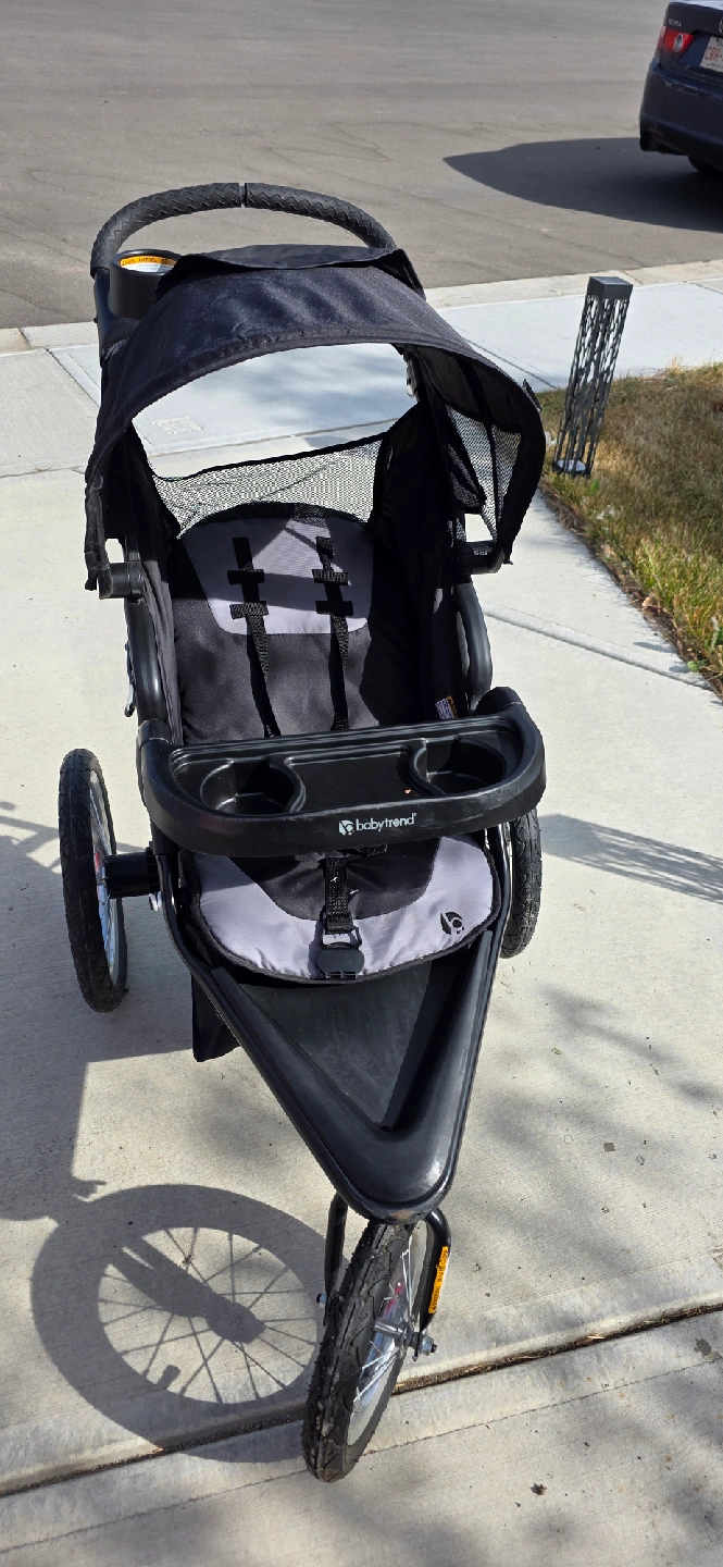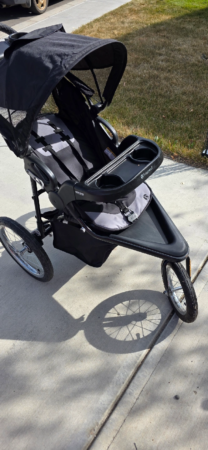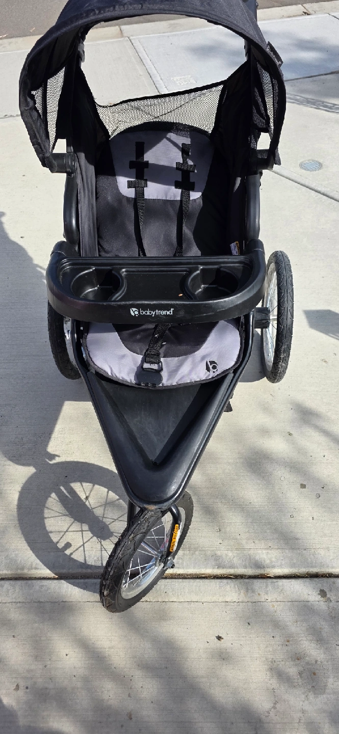 Selling a Baby Trend Expedition jogger stroller. It's in great condition and ready for your little one's adventures! It features a parent tray with cup holders and a child tray, plus a large storage basket underneath for all your essentials
