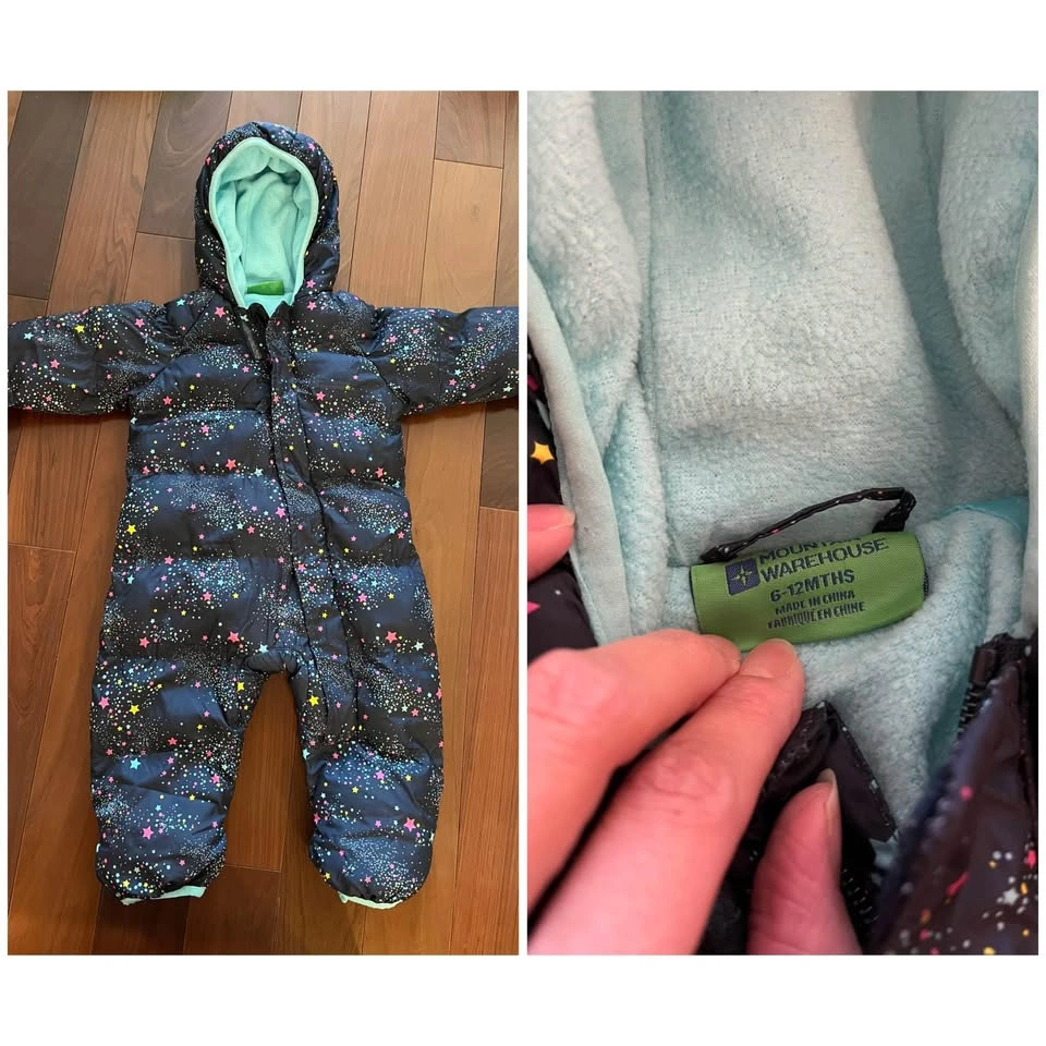 15EUC winter onesie 6-12M. When you flip the edges of sleeves and pants, you can cover baby’s hands and feet. No smoke, no pet home. Pick up in Port Coquitlam $20
