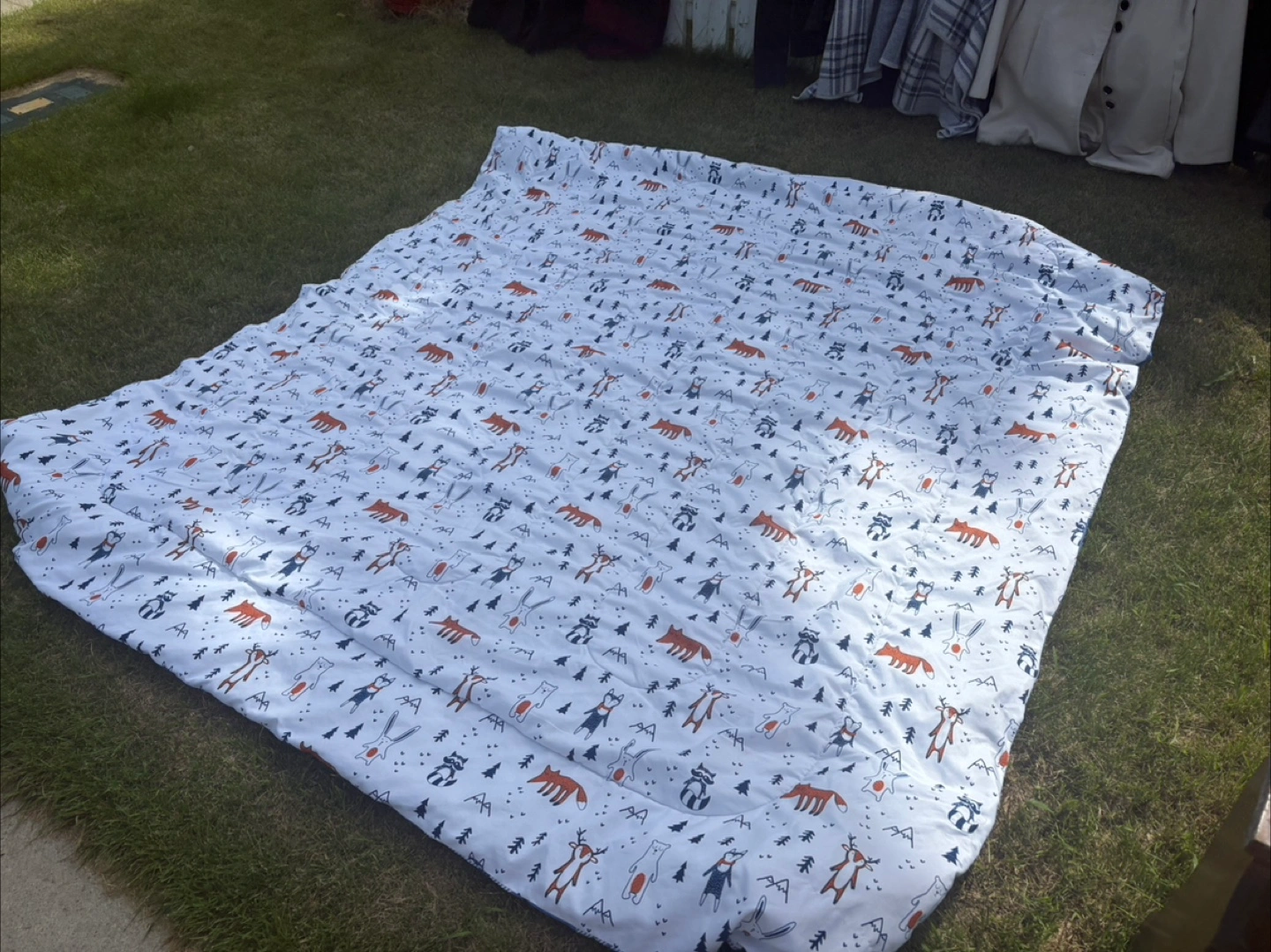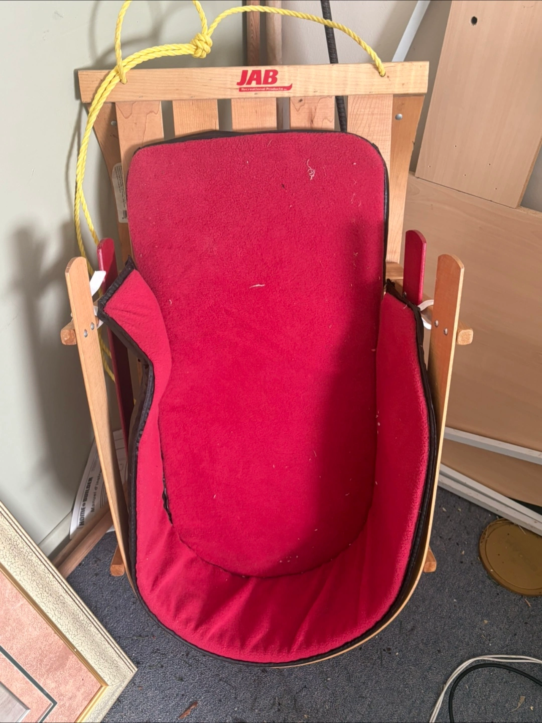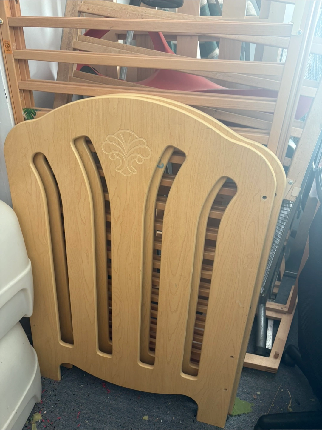 Selling a cute twin comforter. It features a fun animal and forest design Perfect for playtime or naptime! $20. Simple wooden crib without a mattress included $25. Baby wooden sleigh , comfortable red lined , for the fun winter wonderland walks .$40. All excellent condition.