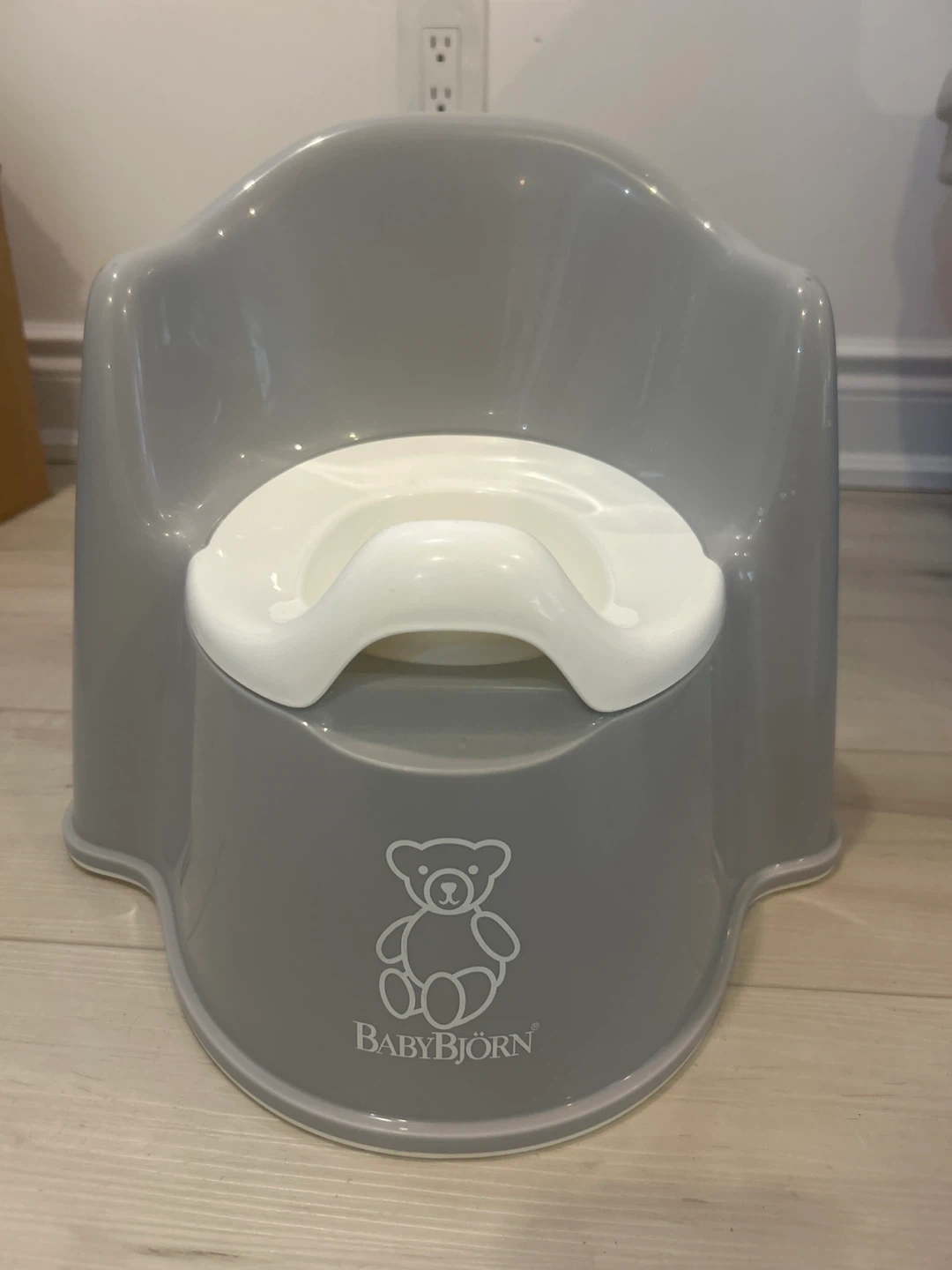 65Selling a BabyBjorn potty chair in great condition! It's a practical and comfortable potty for your little one. The simple design makes it easy to clean, and it looks great in any bathroom. The colour is a neutral grey and white.