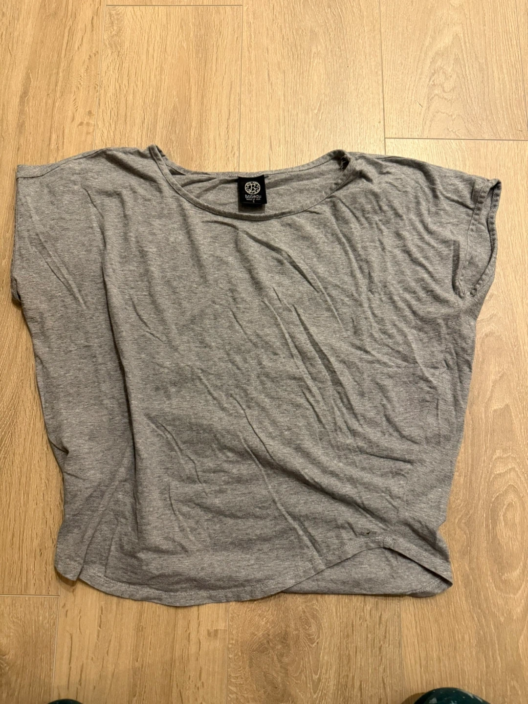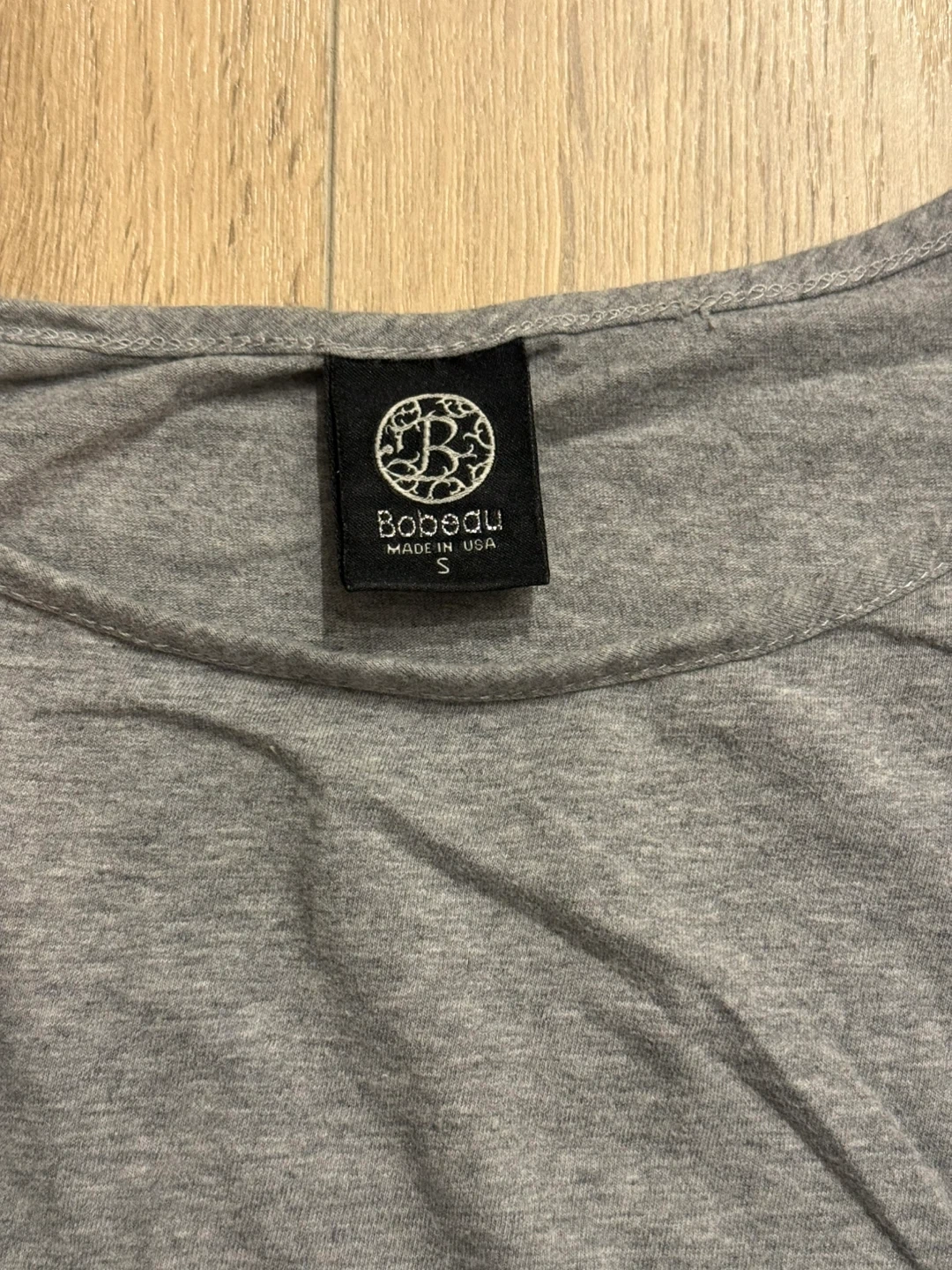 This is a Booboo brand grey t-shirt. Made in USA. Size S. It's a comfortable t-shirt for everyday wear.