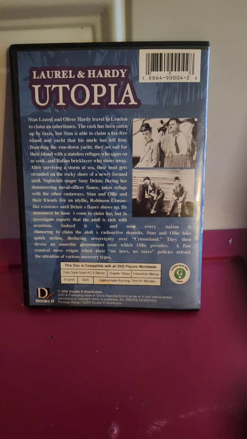 This DVD features the classic film Utopia starring Laurel & Hardy. It's a Region 1 DVD, digitally remastered for superior quality. The running time is 81 minutes.