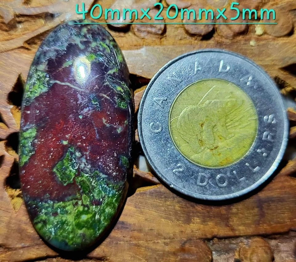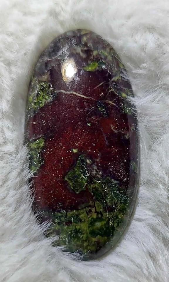 Gorgeous dragonblood cab. This one piece will look fantastic as a pendant. Exact size is listed on the photo itself.
