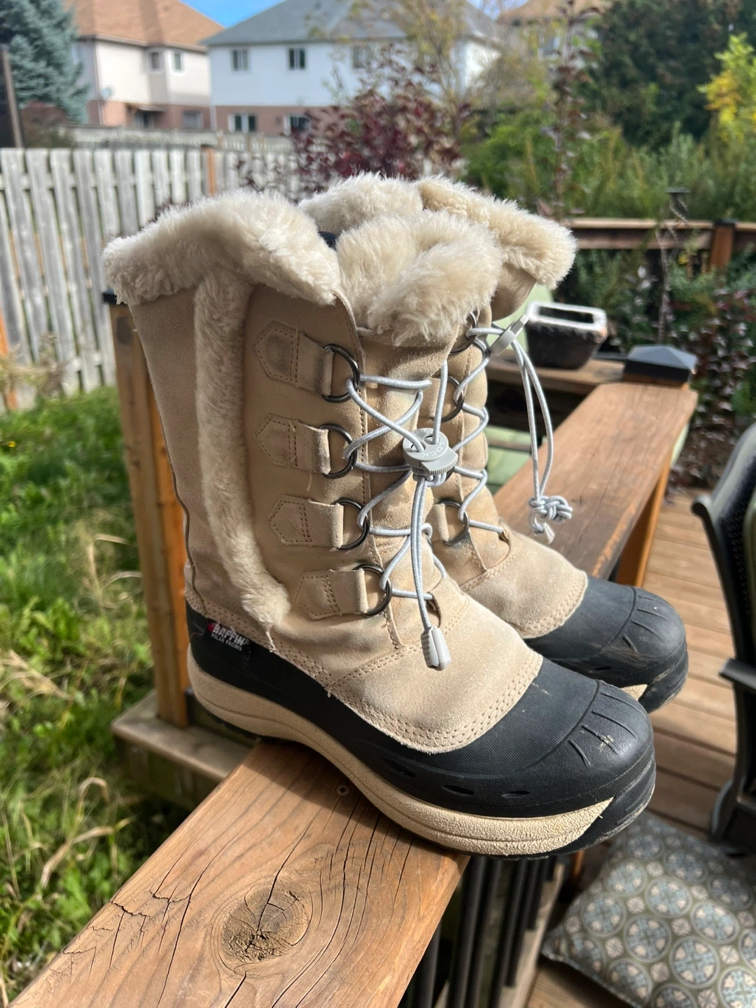86Selling a pair of Baffin Chloe women's winter boots in size 9. They are in great condition and ready to keep your feet warm this winter! The boots are beige with black soles and have a faux fur trim. Originally bought for $220