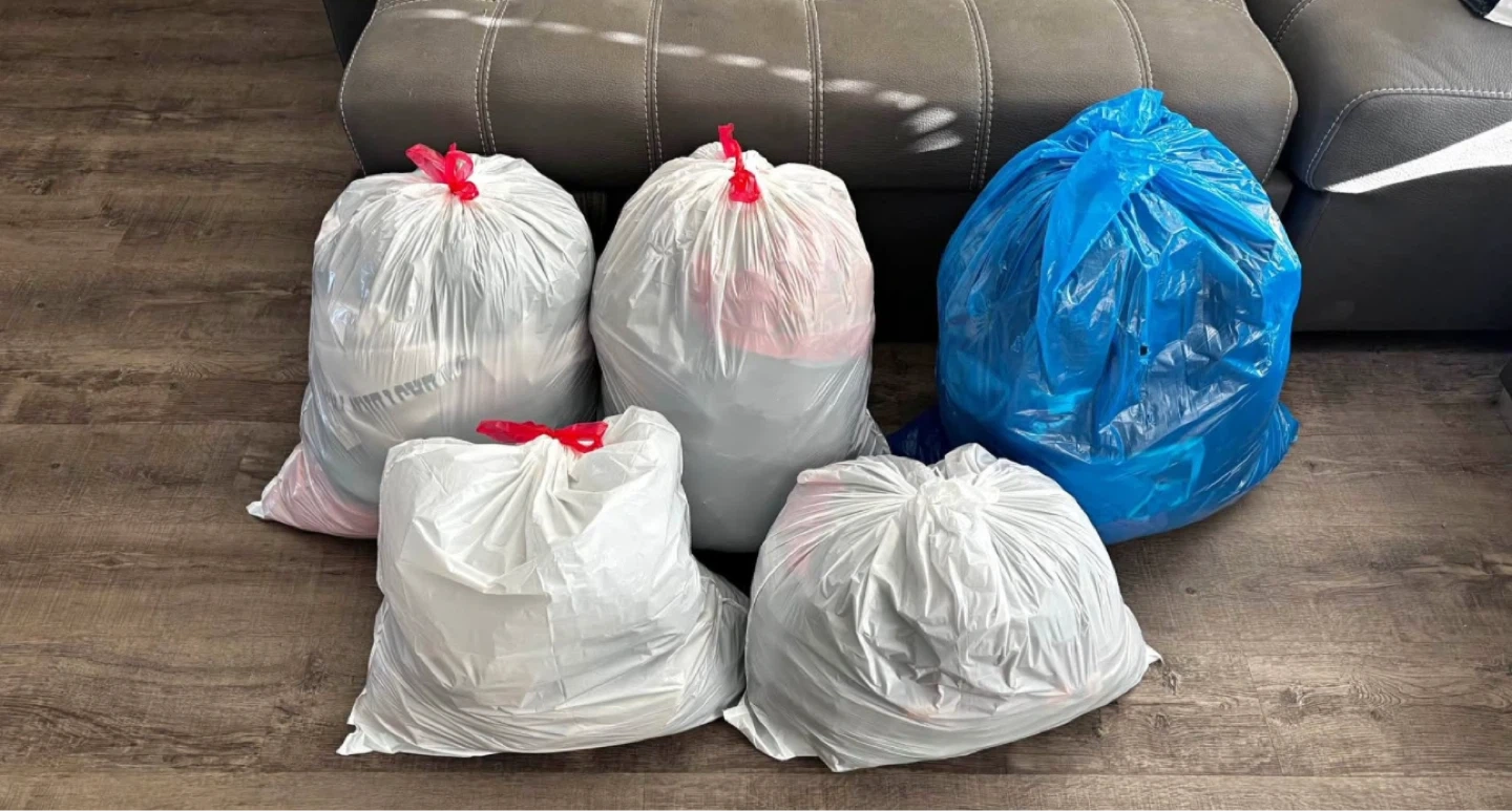 22I have several bags of used clothing available. The bags are filled with a variety of items, including tops, bottoms, and possibly other items. Great for anyone looking for a mix of clothes!