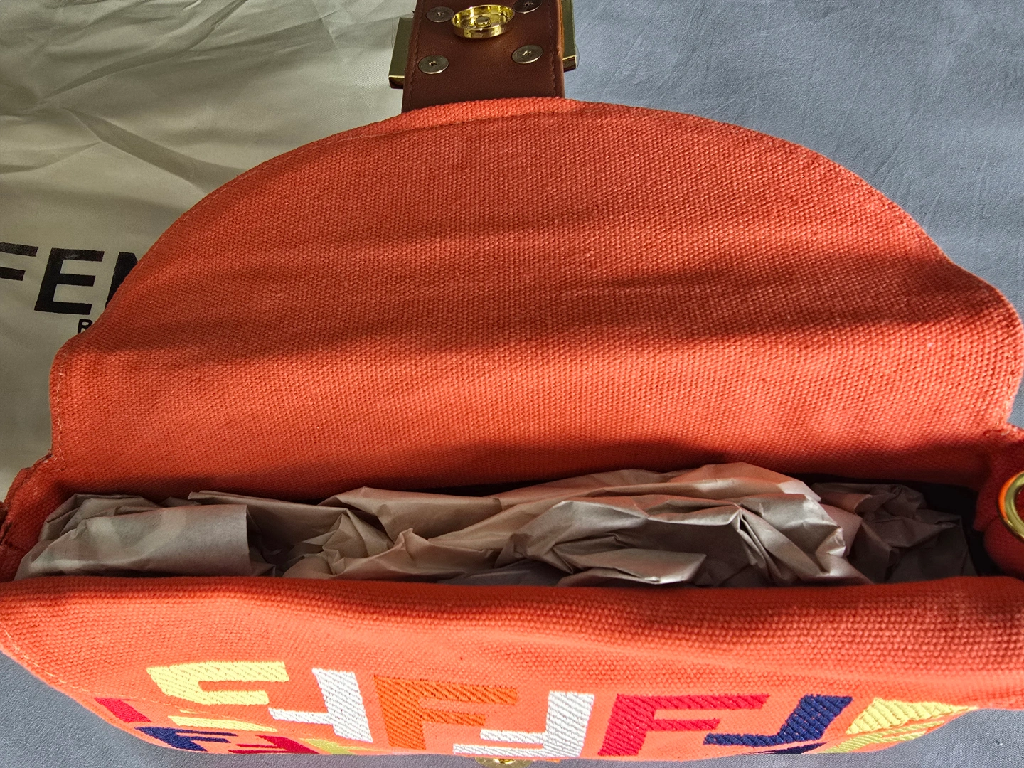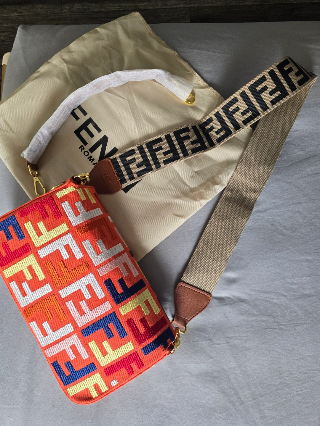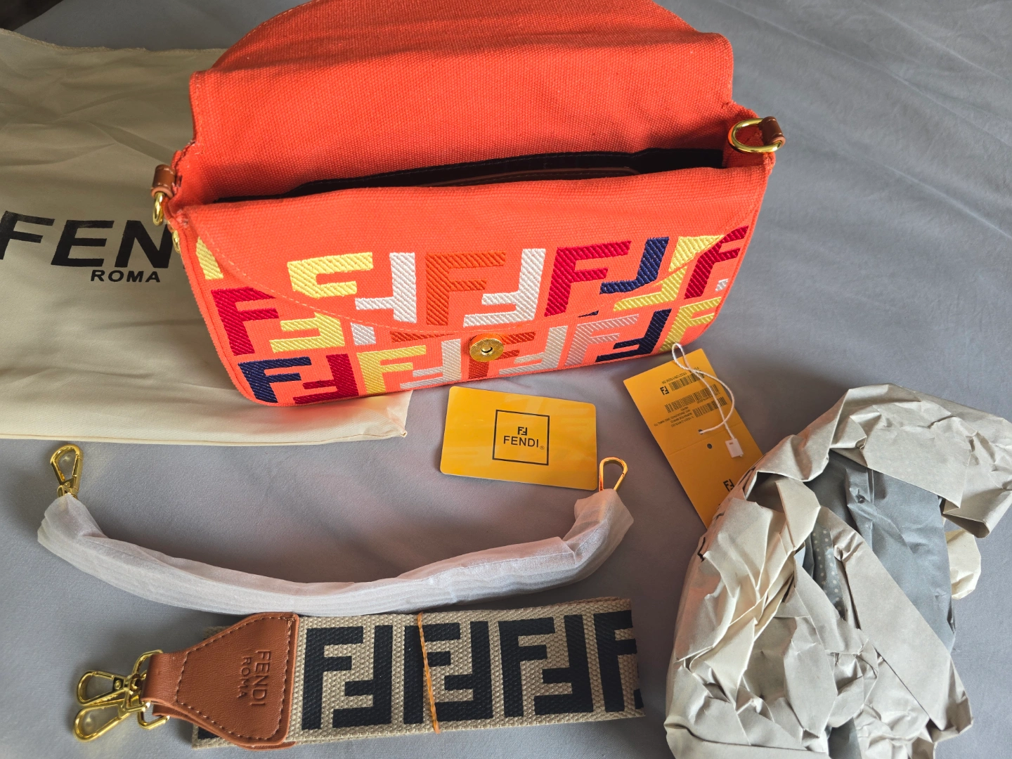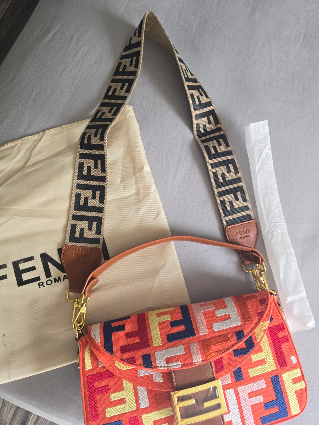 134Brand New Baguette bag, Features a vibrant multicoloured FF motif. Includes a shoulder strap and a small handle strap with the dust bag etc, new n unused in original packaging, refer all pictures, Pick Up Location- Square One Mall