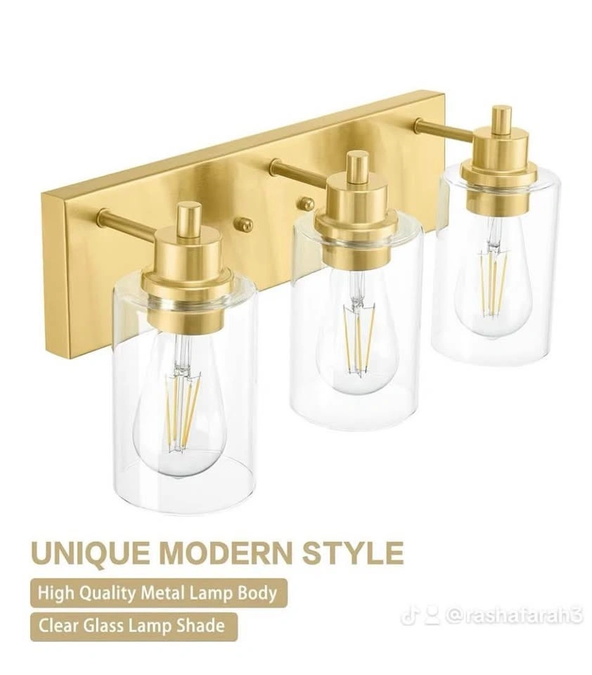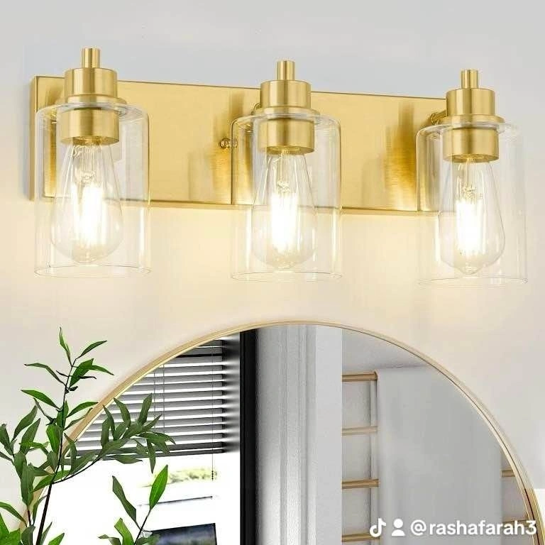 Modern gold bathroom vanity light fixture by Blitliviar, stylish and elegant, perfect for lighting over mirrors and vanities. Brand new, unused, and in excellent condition.