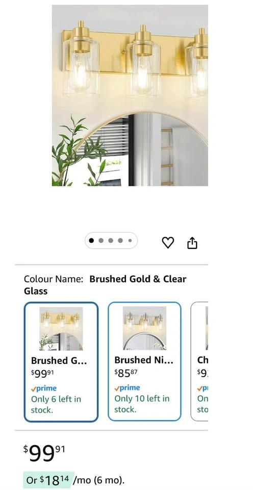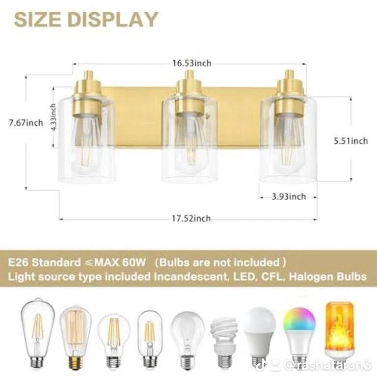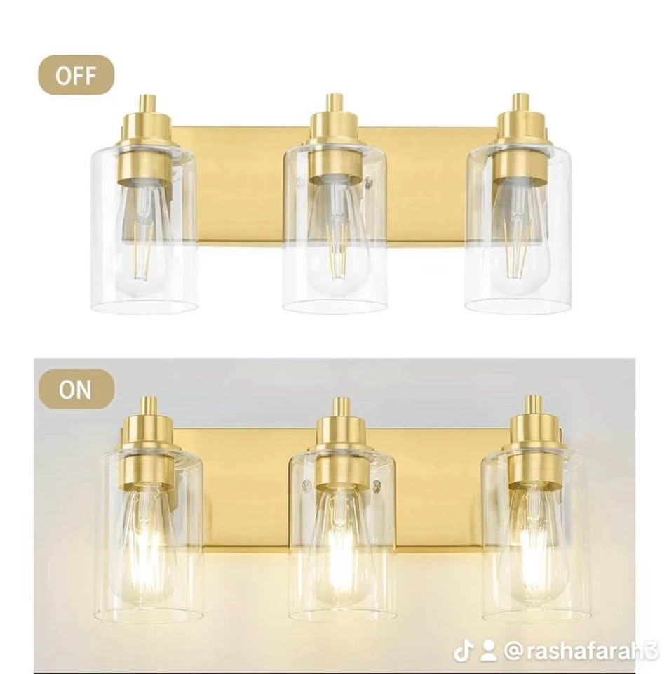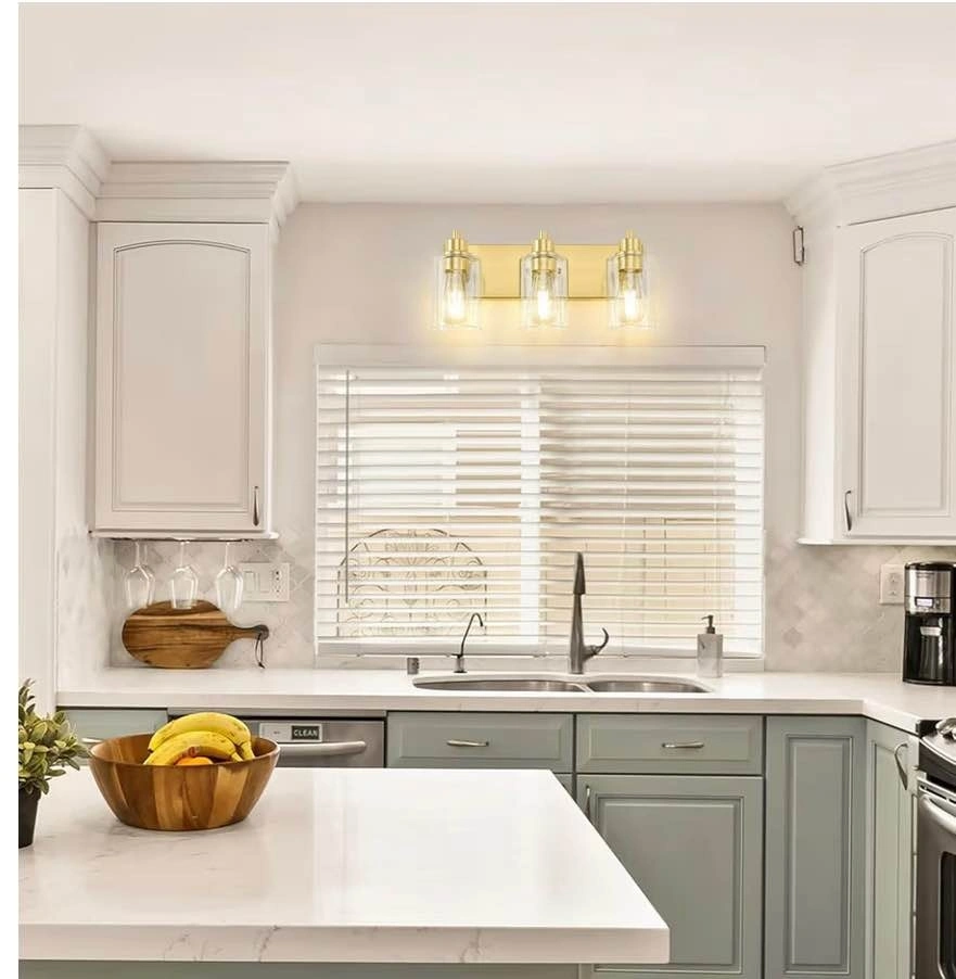 Modern gold bathroom vanity light fixture by Blitliviar, stylish and elegant, perfect for lighting over mirrors and vanities. Brand new, unused, and in excellent condition.