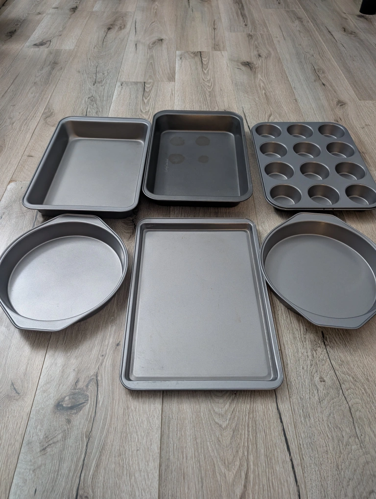 10Selling a set of 5 baking pans. Includes various shapes and sizes, perfect for all your baking needs! Great condition and ready for a new home