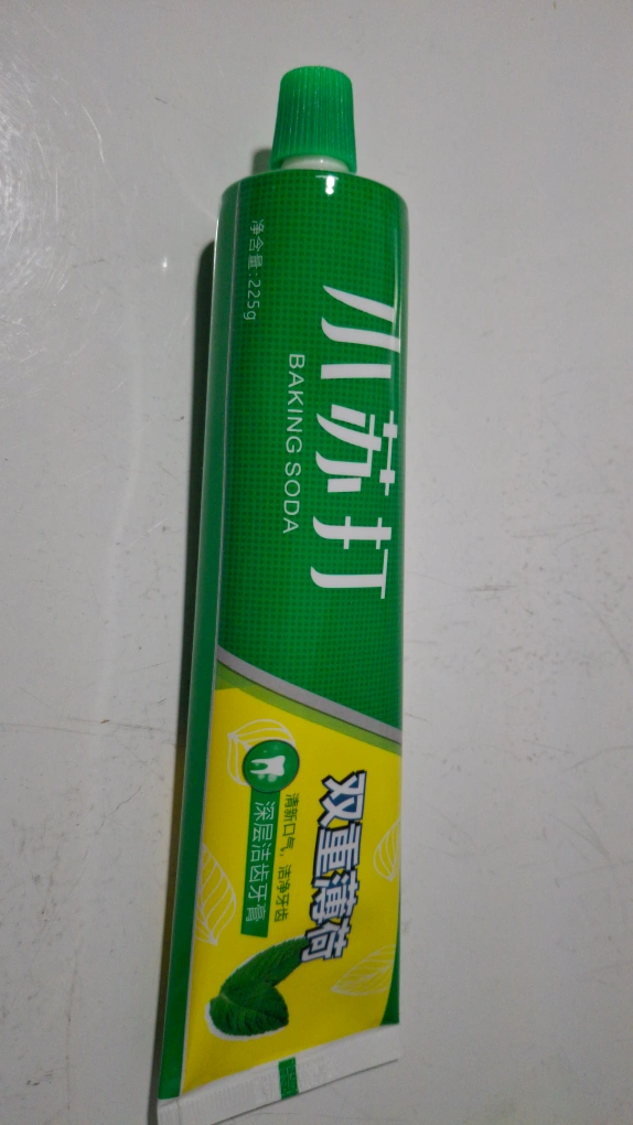 Selling a new tube of Baking Soda toothpaste. It's a double mint flavour and helps to freshen breath and clean teeth! The tube contains 225g of toothpaste