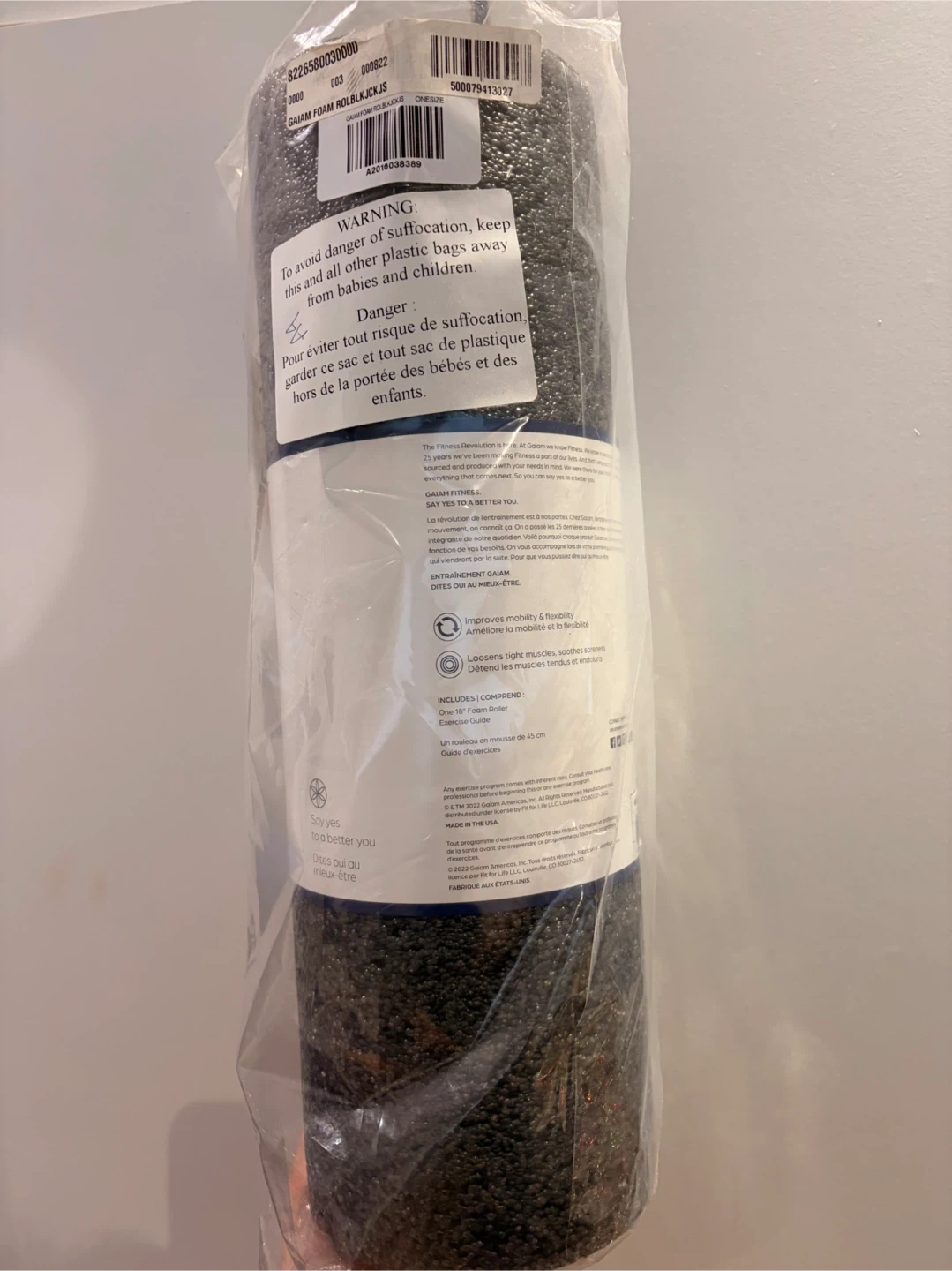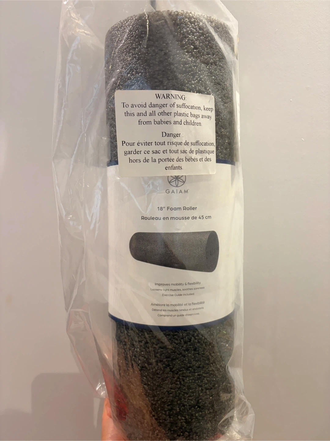 Gaiam 18" foam roller for exercise. Improves mobility and flexibility. Relieves tight muscles and soothes soreness.