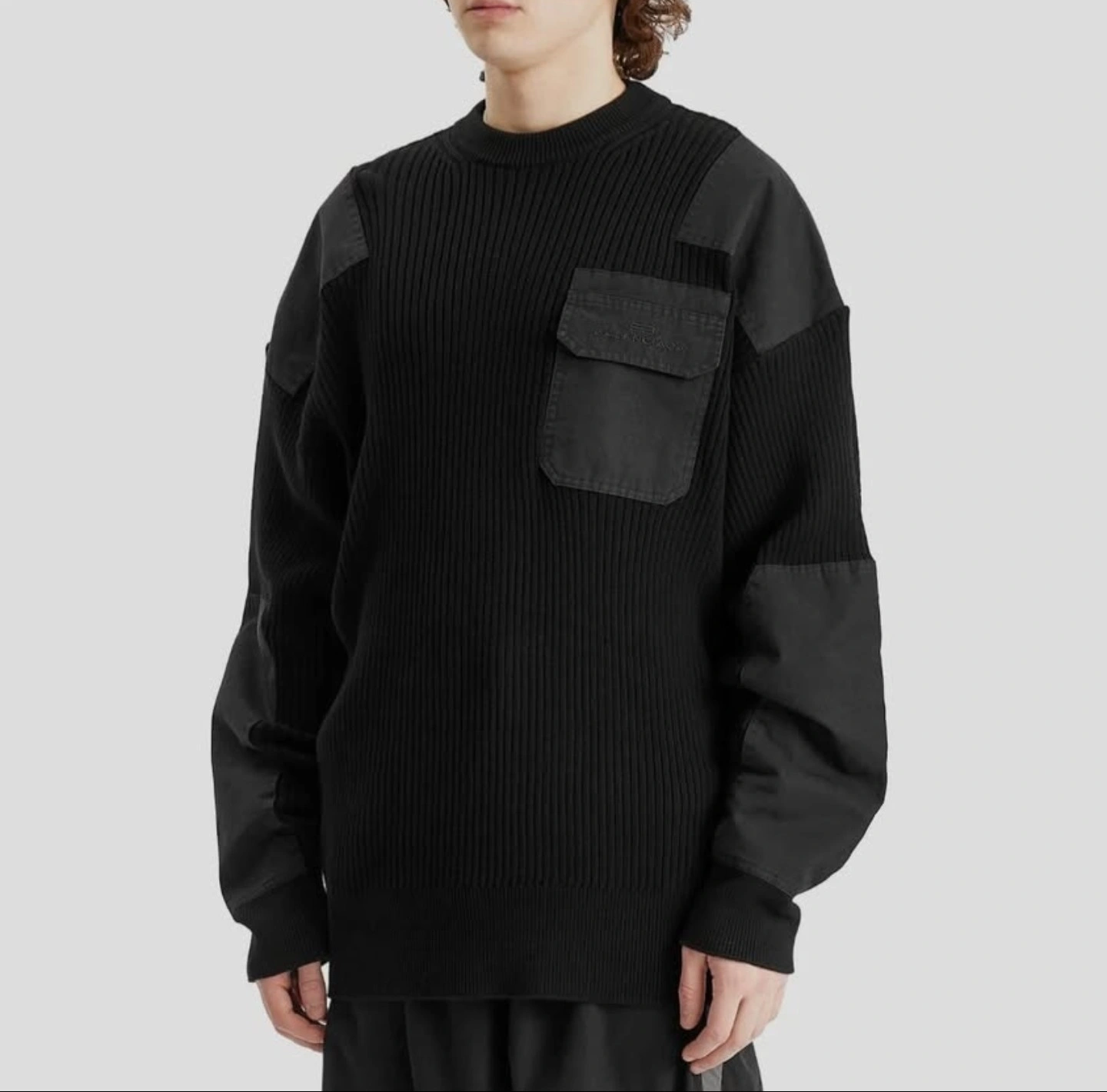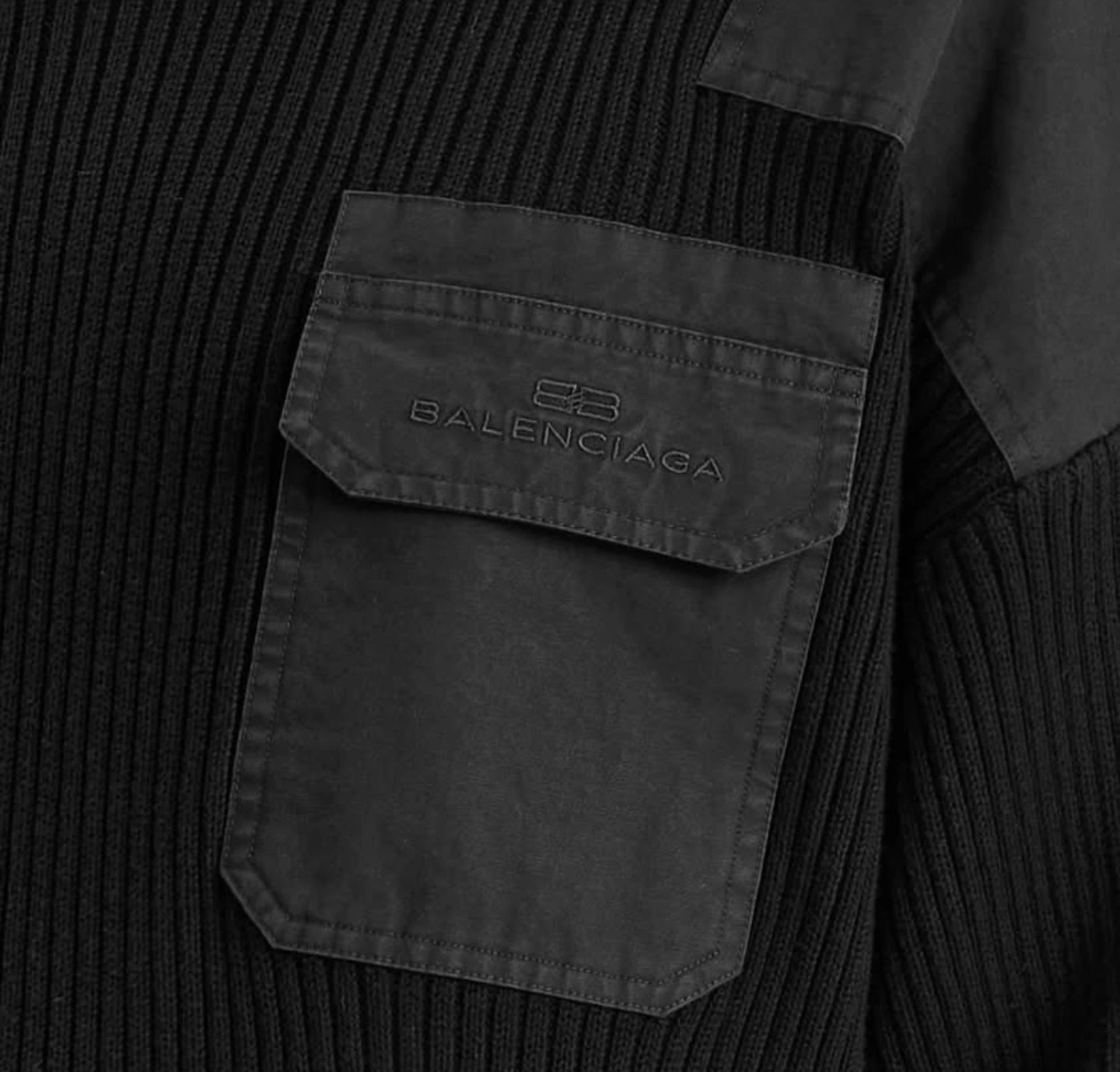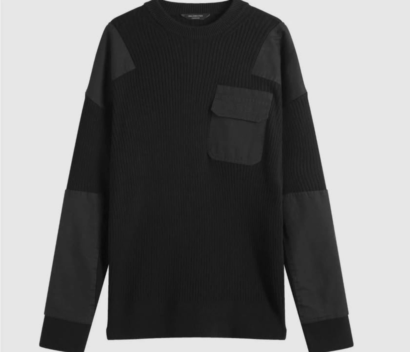 60This is a Balenciaga black panelled knit jumper! It features a unique design with contrasting panels and a knit texture. Perfect for adding a stylish edge to your wardrobe Brand New/ Never worn / Excellent Condition/ MRP C$2,572/- Includes all tags
