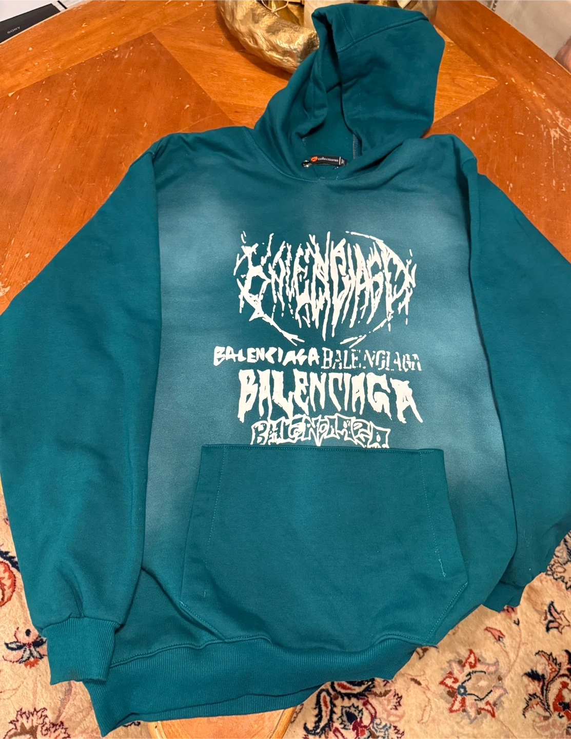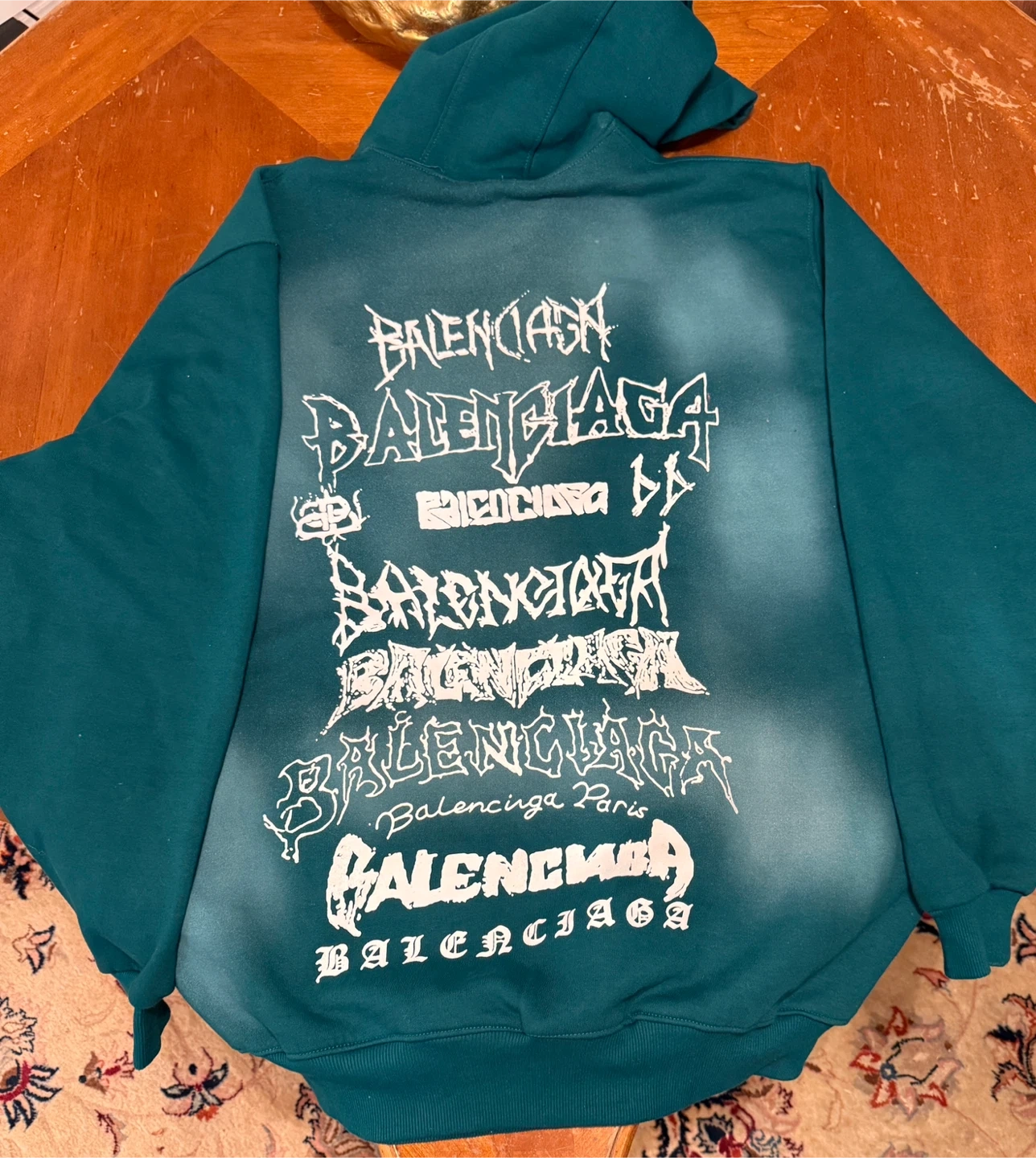 60Selling a Balenciaga Paris hoodie in a nice green colour. It's a stylish piece with the Balenciaga logo printed on the front and back. Perfect for adding a unique touch to your wardrobe! 1:1 copy Not Real