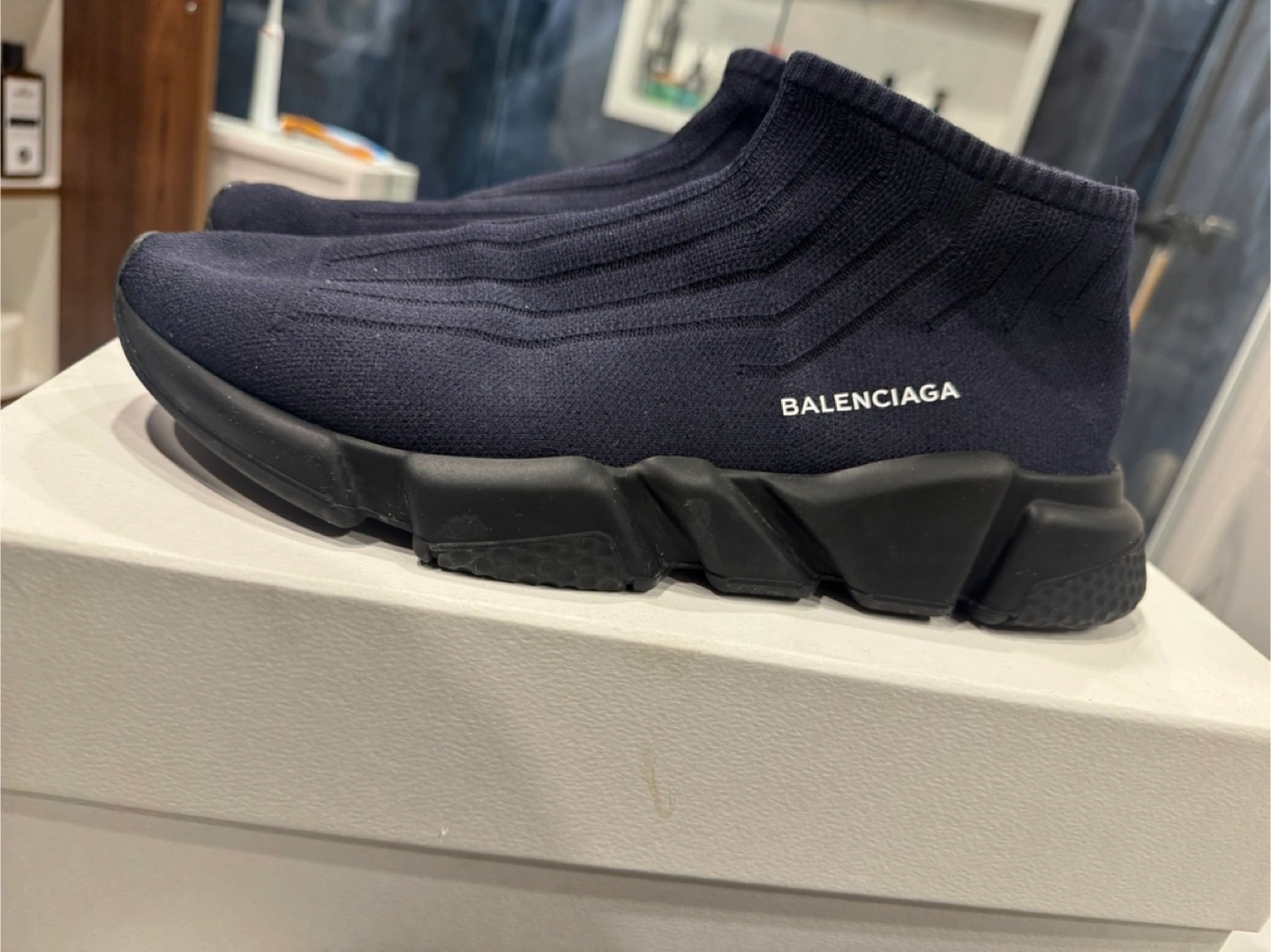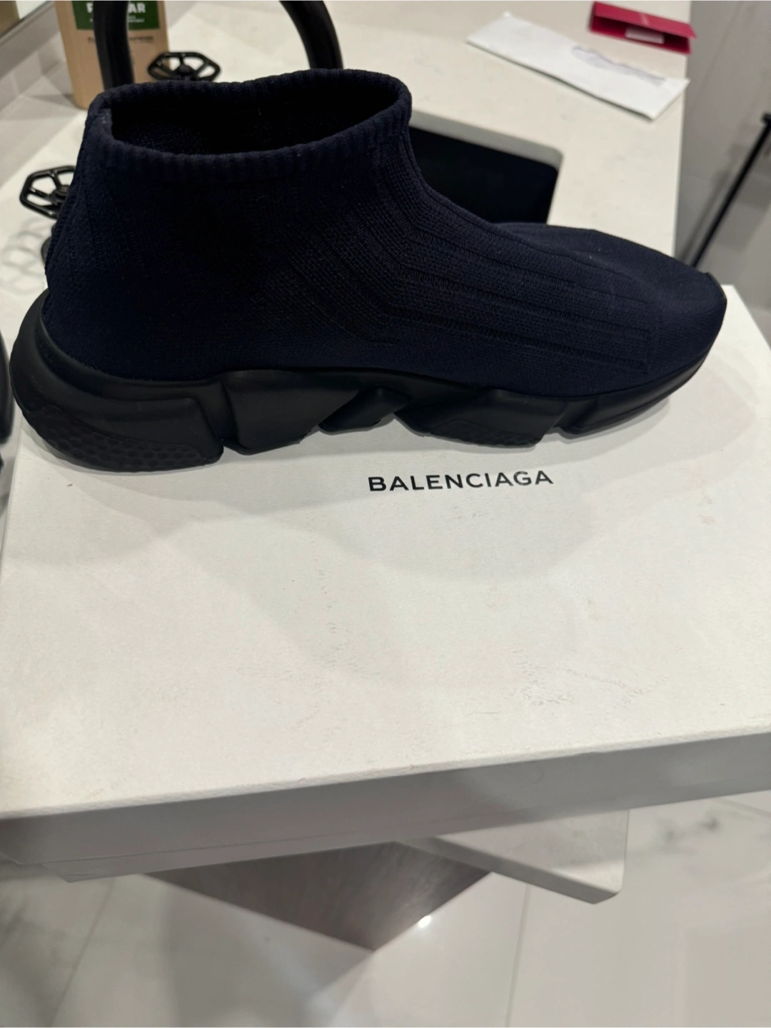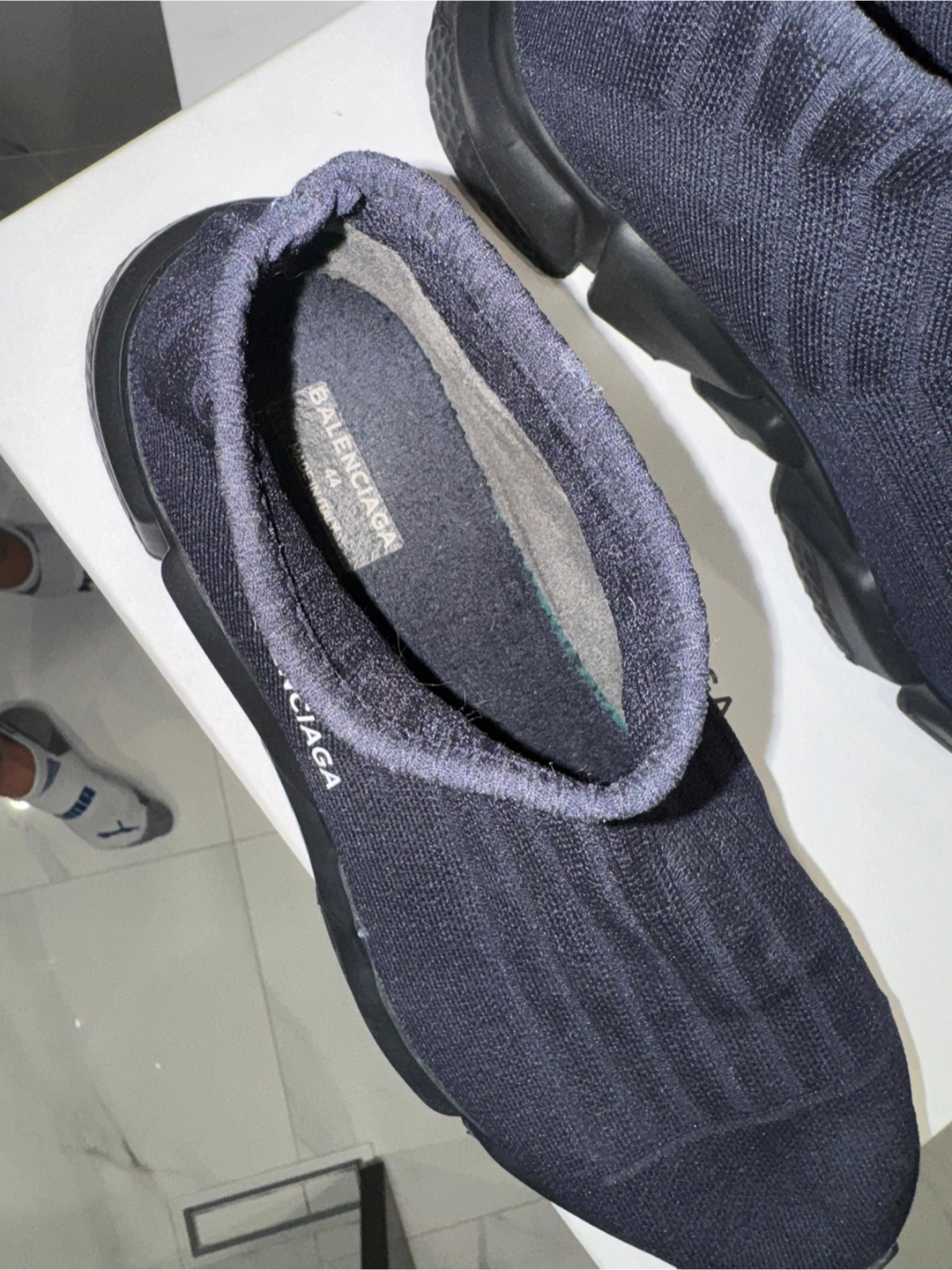Brand new never worn, only tried on balenciaga shoes Blue with black with logo on the side Bought at Yorkdale location Size 11 shoe Older style shoe so hard to find Bought for 1100