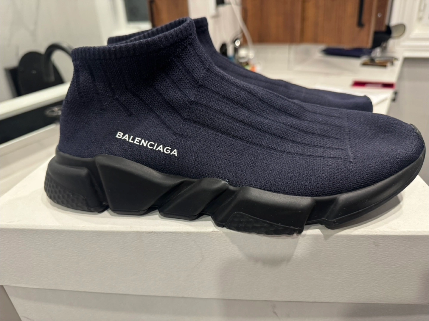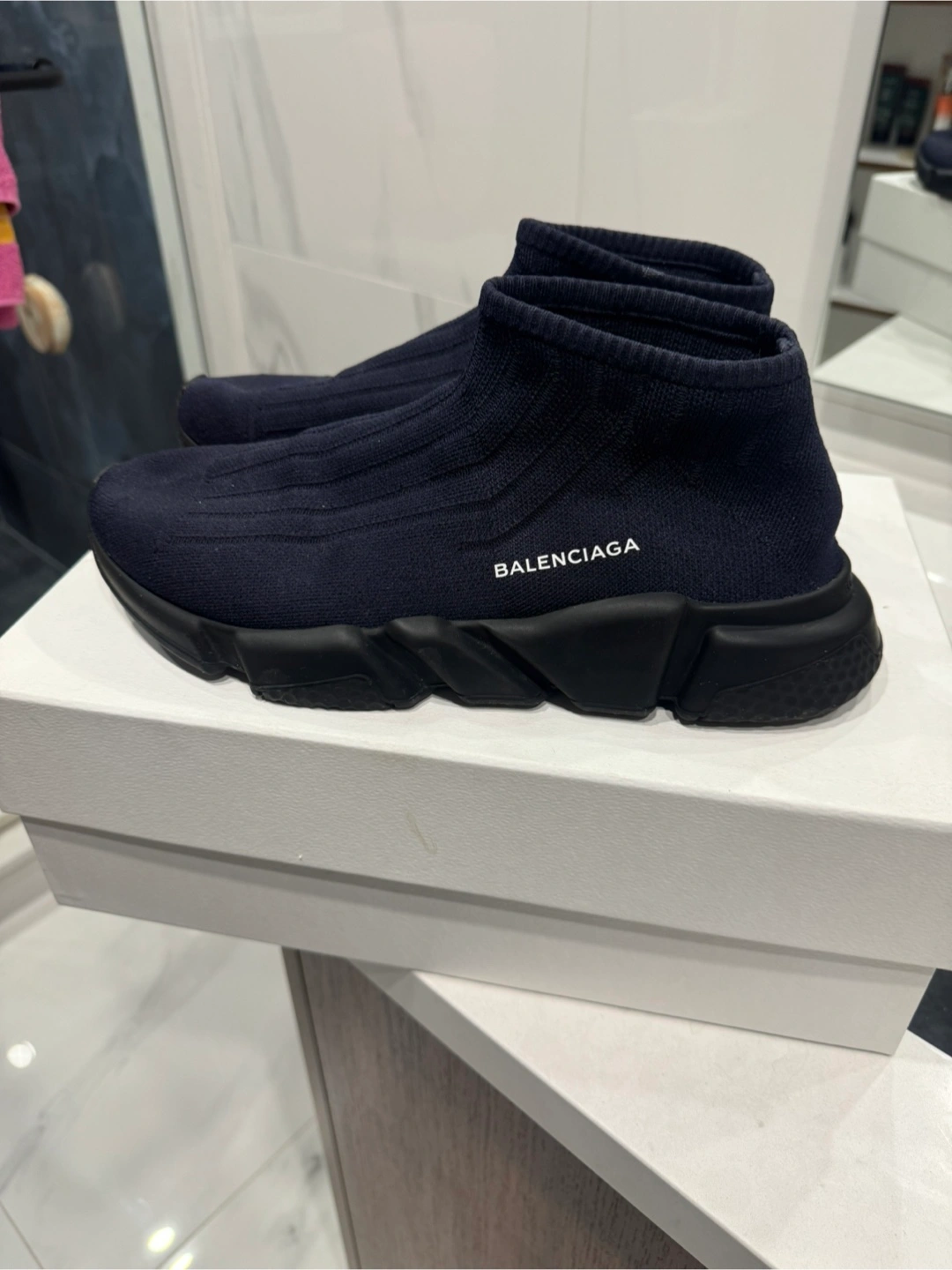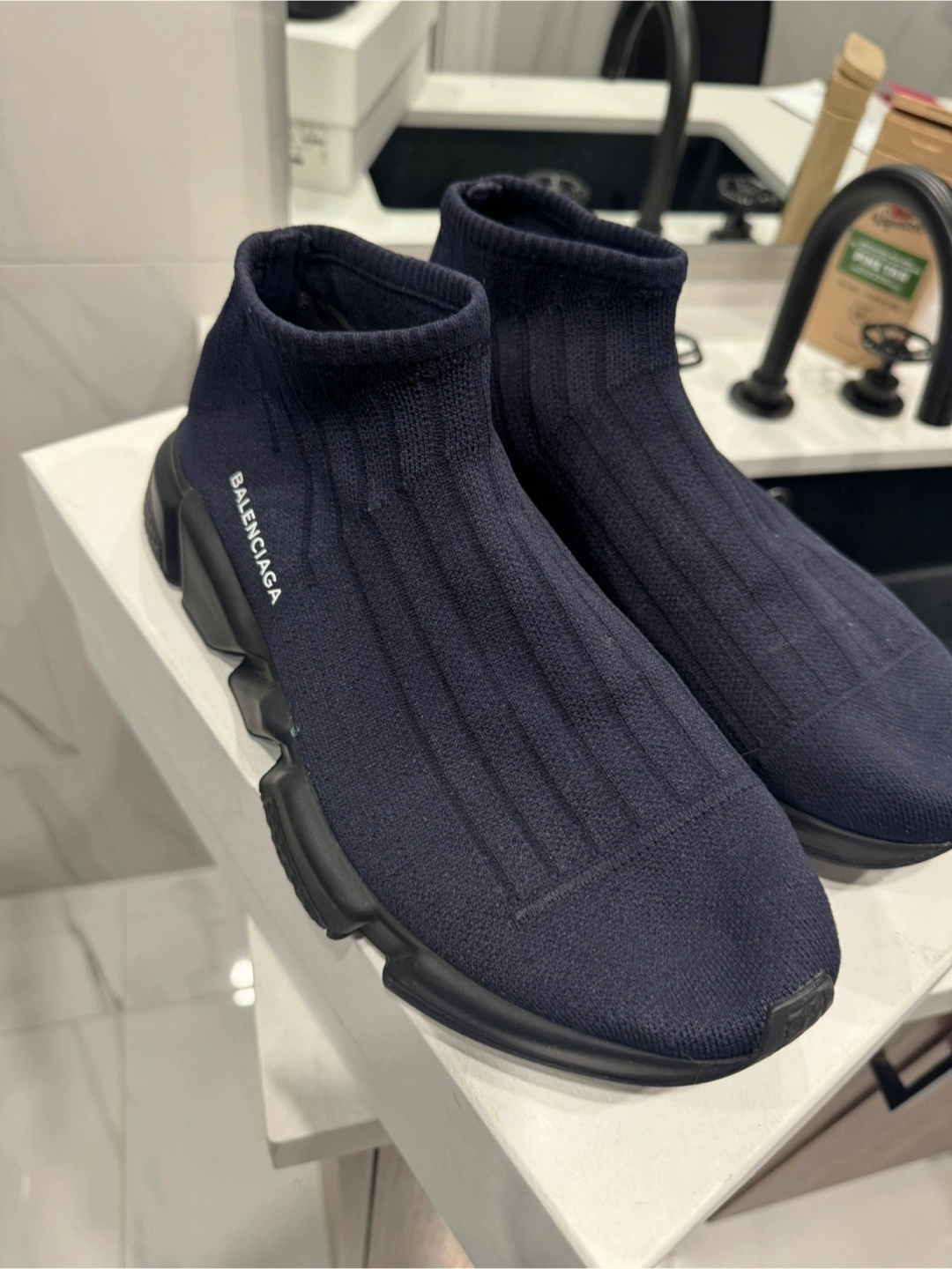 Brand new never worn, only tried on balenciaga shoes Blue with black with logo on the side Bought at Yorkdale location Size 11 shoe Older style shoe so hard to find Bought for 1100
