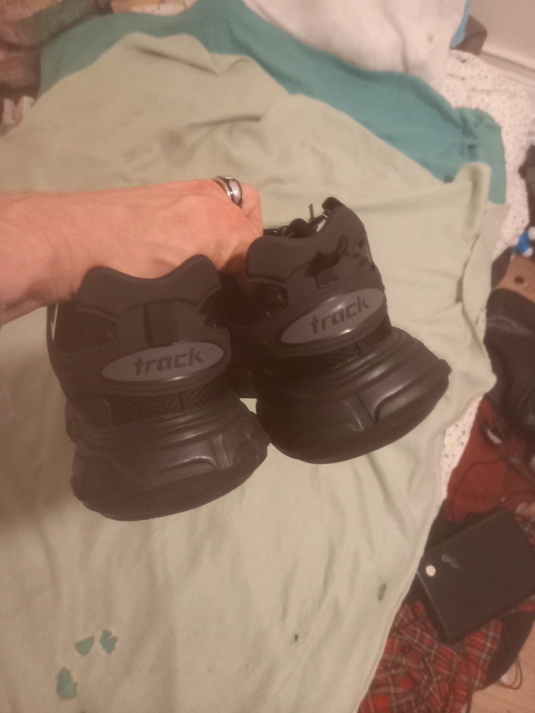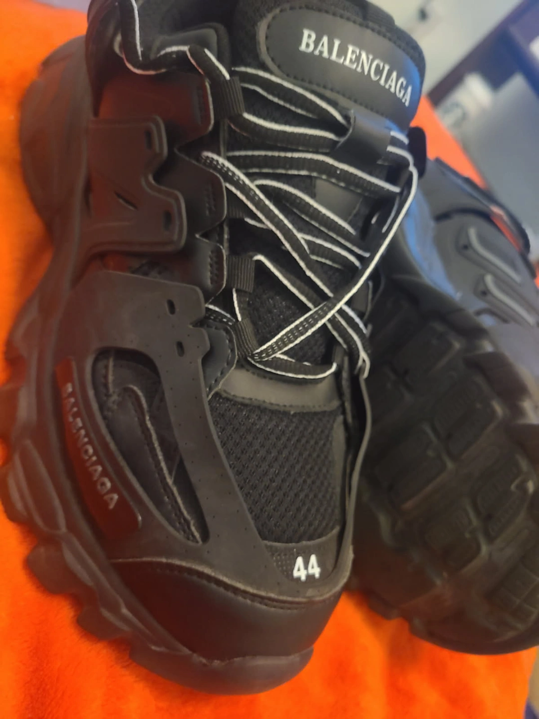 83Women's Balenciaga Track Sneakers. Black mesh and nylon. Size 44. new condition. $250 or best offer willing to trade for iPhone 12 pro or newer. karrot suggested selling them 600-800.